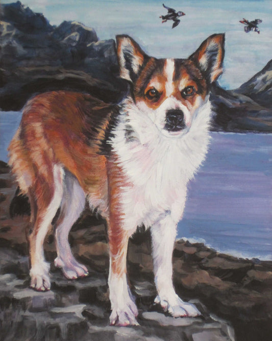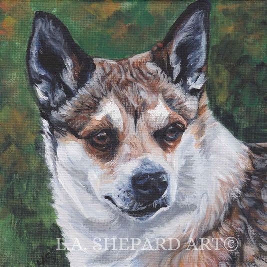 Norwegian LUNDEHUND dog art PORTRAIT print of LA Shepard painting 8x8"