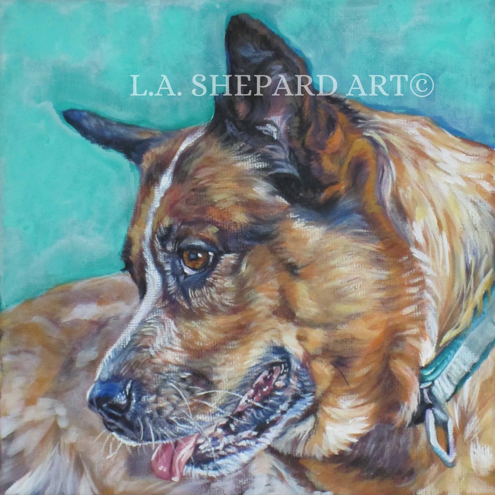 Australian Cattle Dog art print Canvas print of LA Shepard painting 8x8