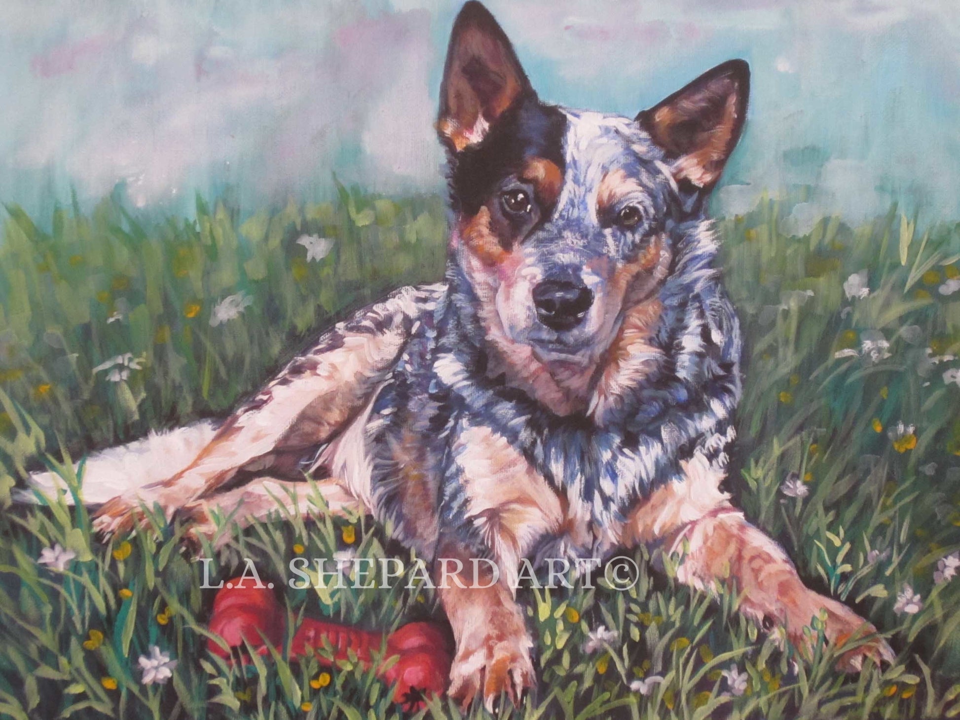Australian Cattle Dog blue HEELER art PRINT of LA Shepard painting 8x10