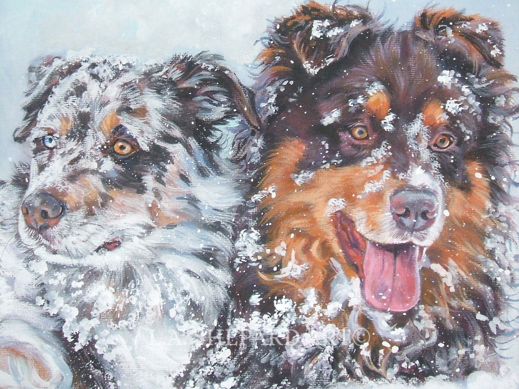 Australian Shepherd AUSSIE dog ART portrait canvas PRINT of LAShepard painting 8x10"
