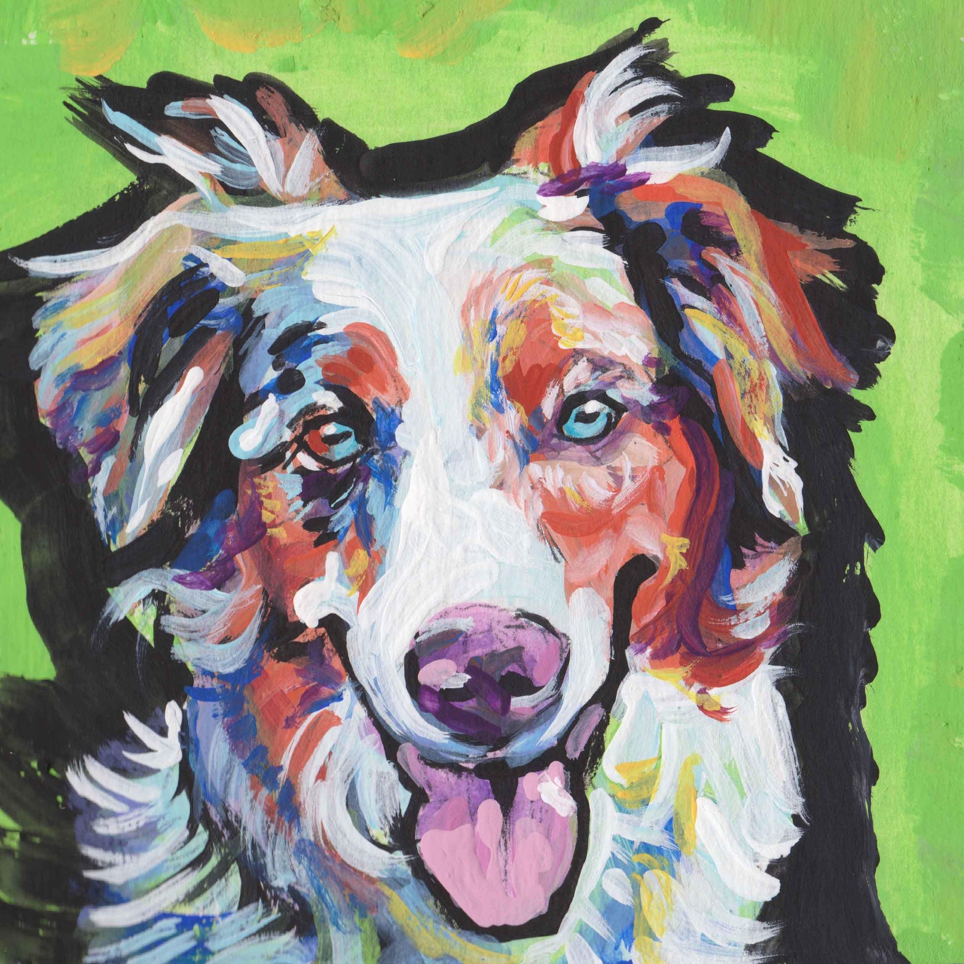 Australian Shepherd dog art print blue merle aussie pop art bright colors 12x12"