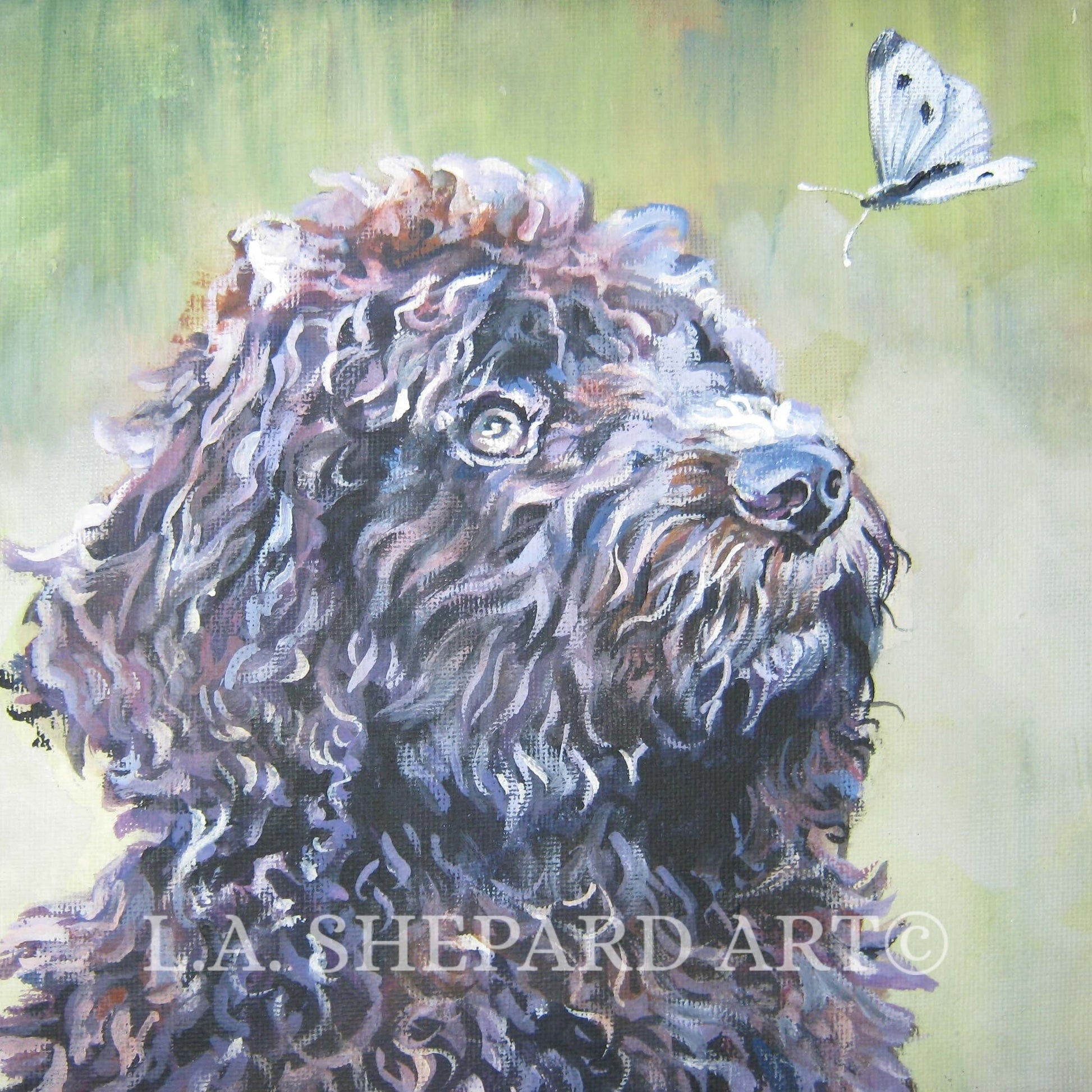 BARBET dog art portrait canvas PRINT of LAShepard painting 12x12"