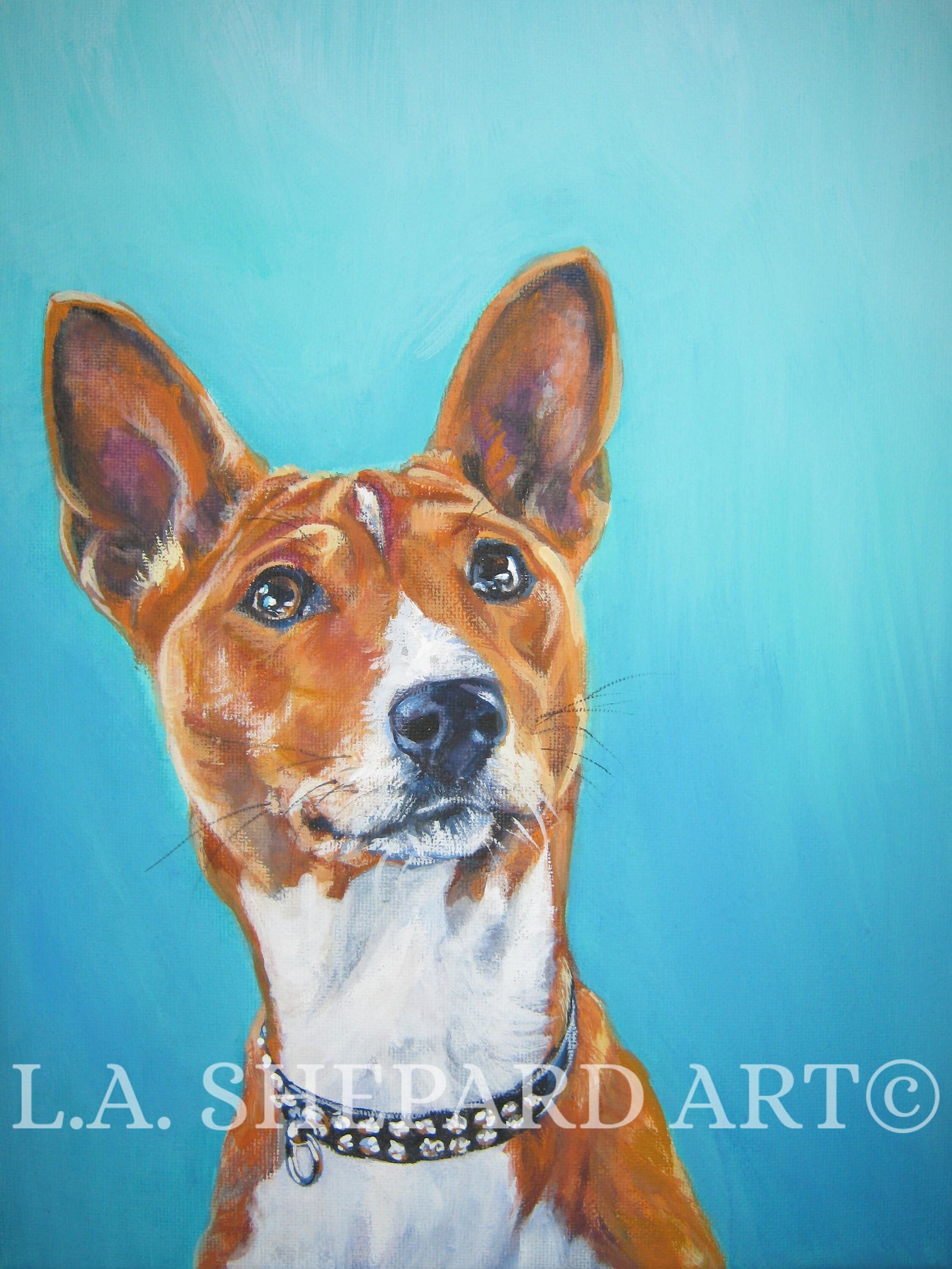 BASENJI DOG ART portrait print of LAShepard painting 12x16