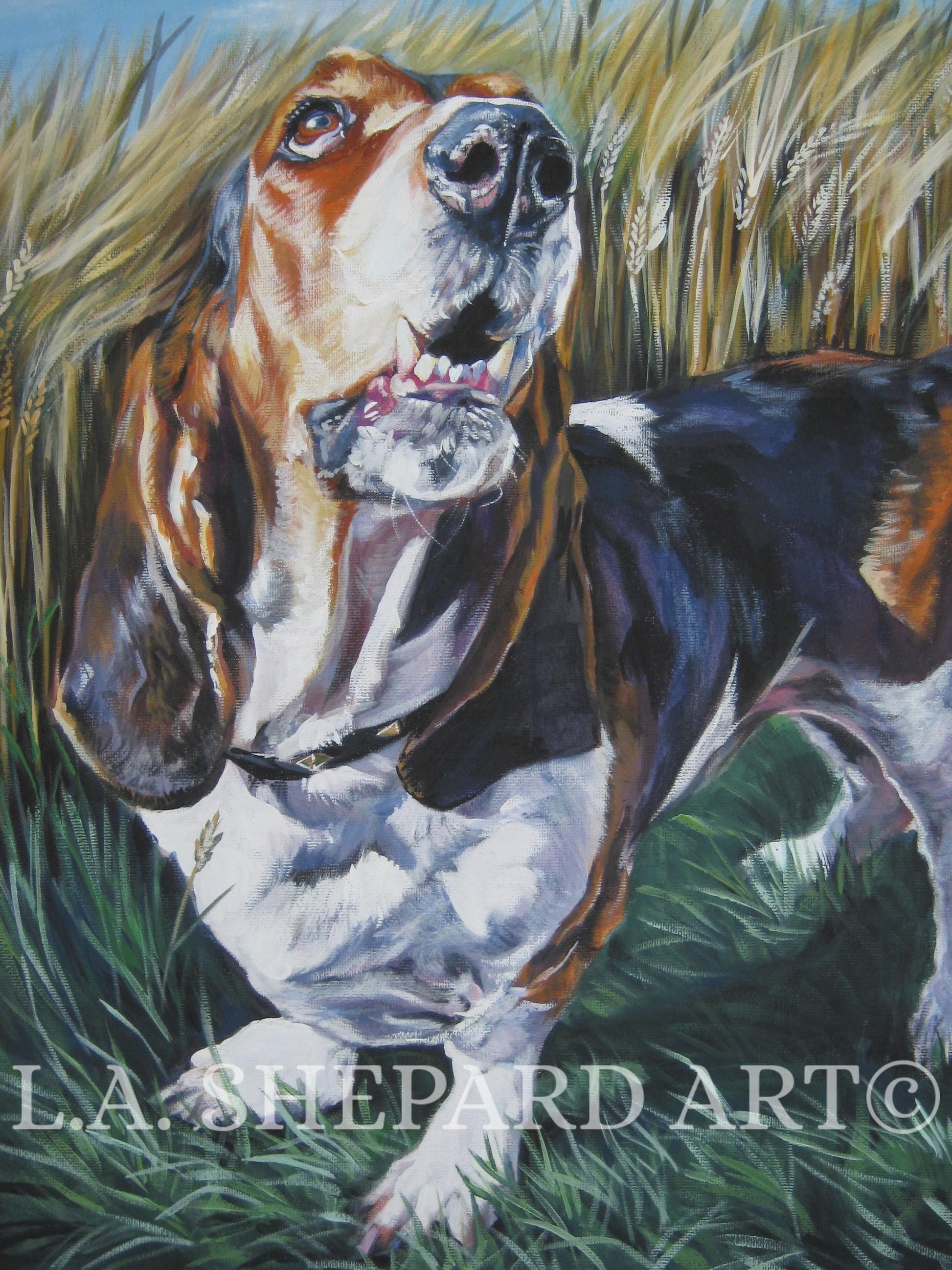 Basset Hound GICLEE print from a painting by L.A.Shepard 8x10 inch
