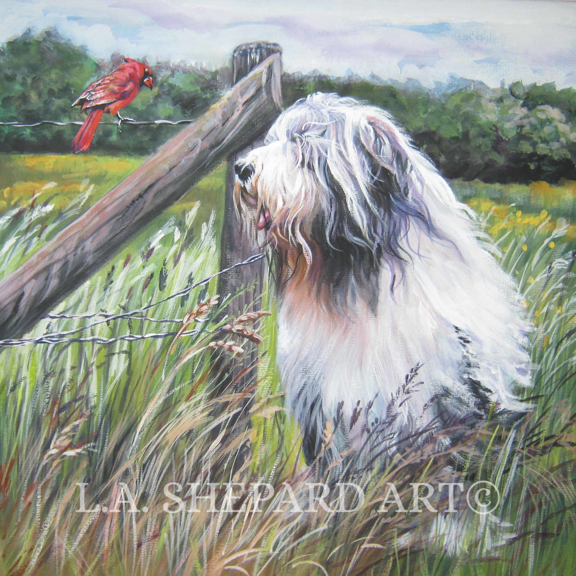 12 x 12 inch Bearded collie GICLEE print by L.A.Shepard