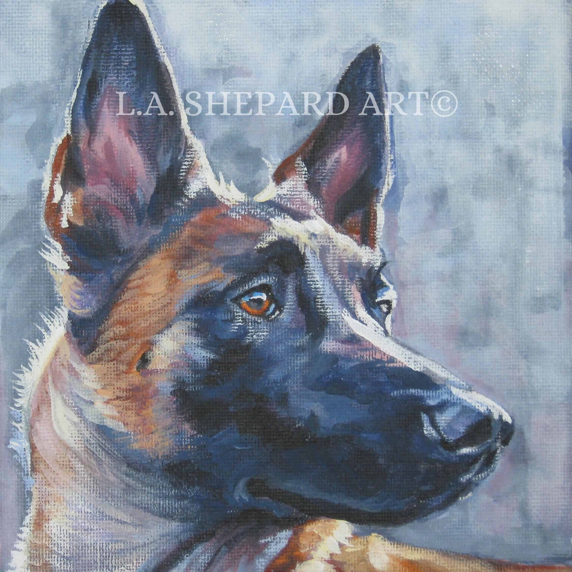 BELGIAN MALINOIS dog portrait art PRINT of LAShepard painting 12x12
