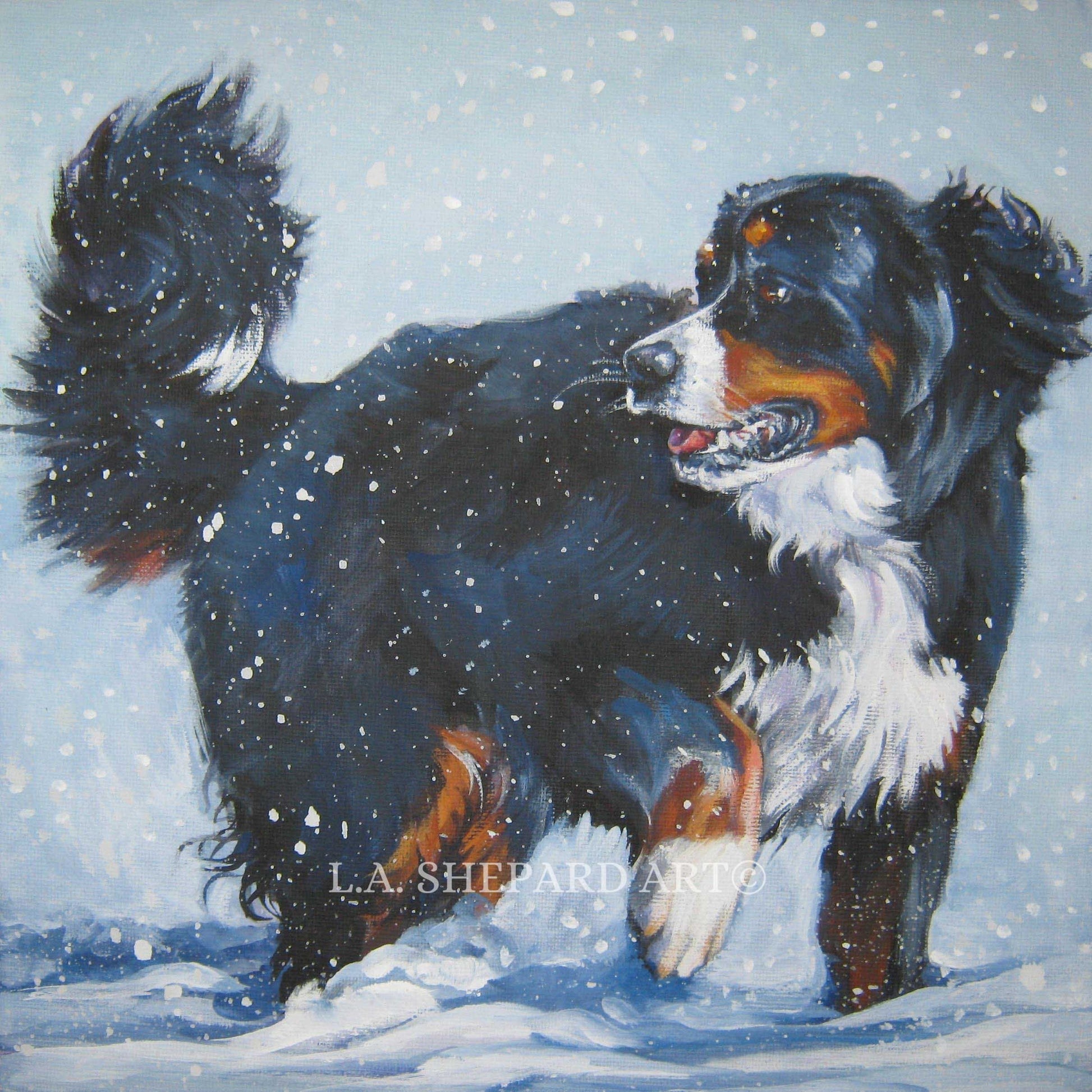 8 x 8 inch Bernese Mountain Dog in snow giclee print by L.A.Shepard