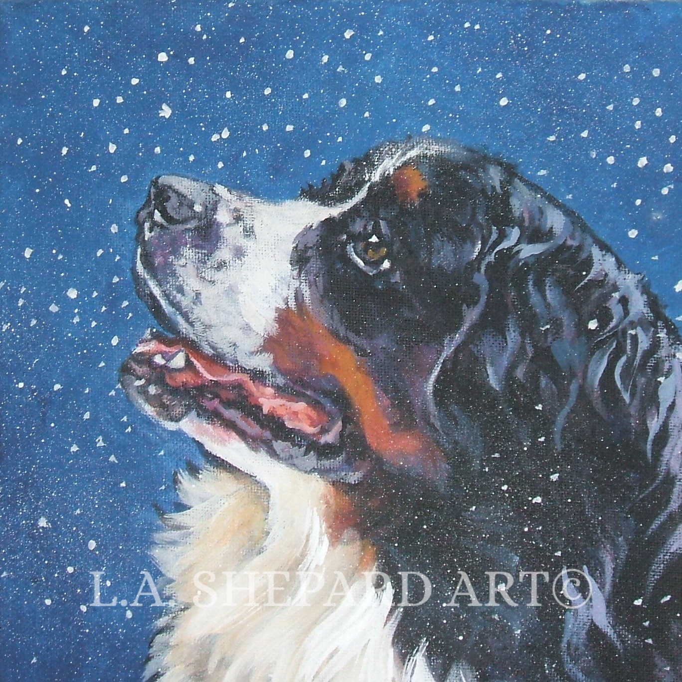BERNESE Mountain Dog art portrait canvas PRINT of LA Shepard painting 8x8