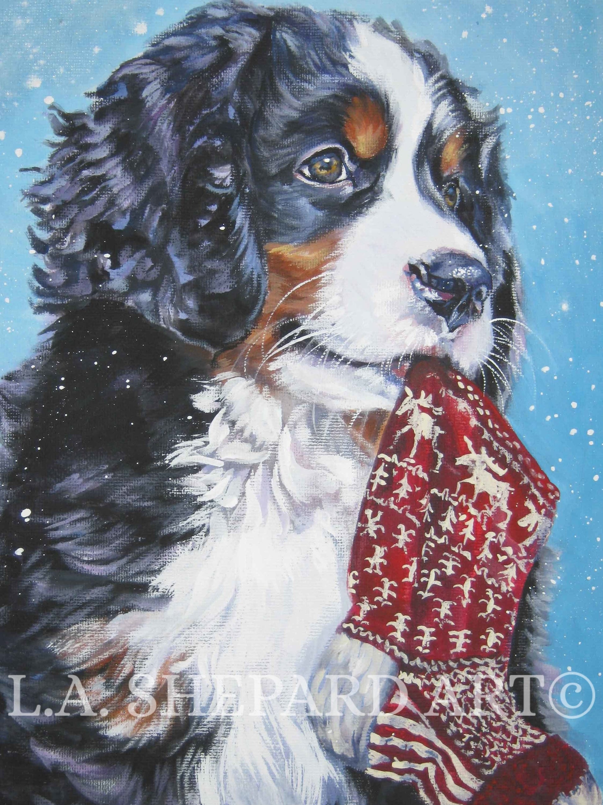Bernese Mountain Dog BERNER art PRINT of LAShepard painting 8x10 XMAS
