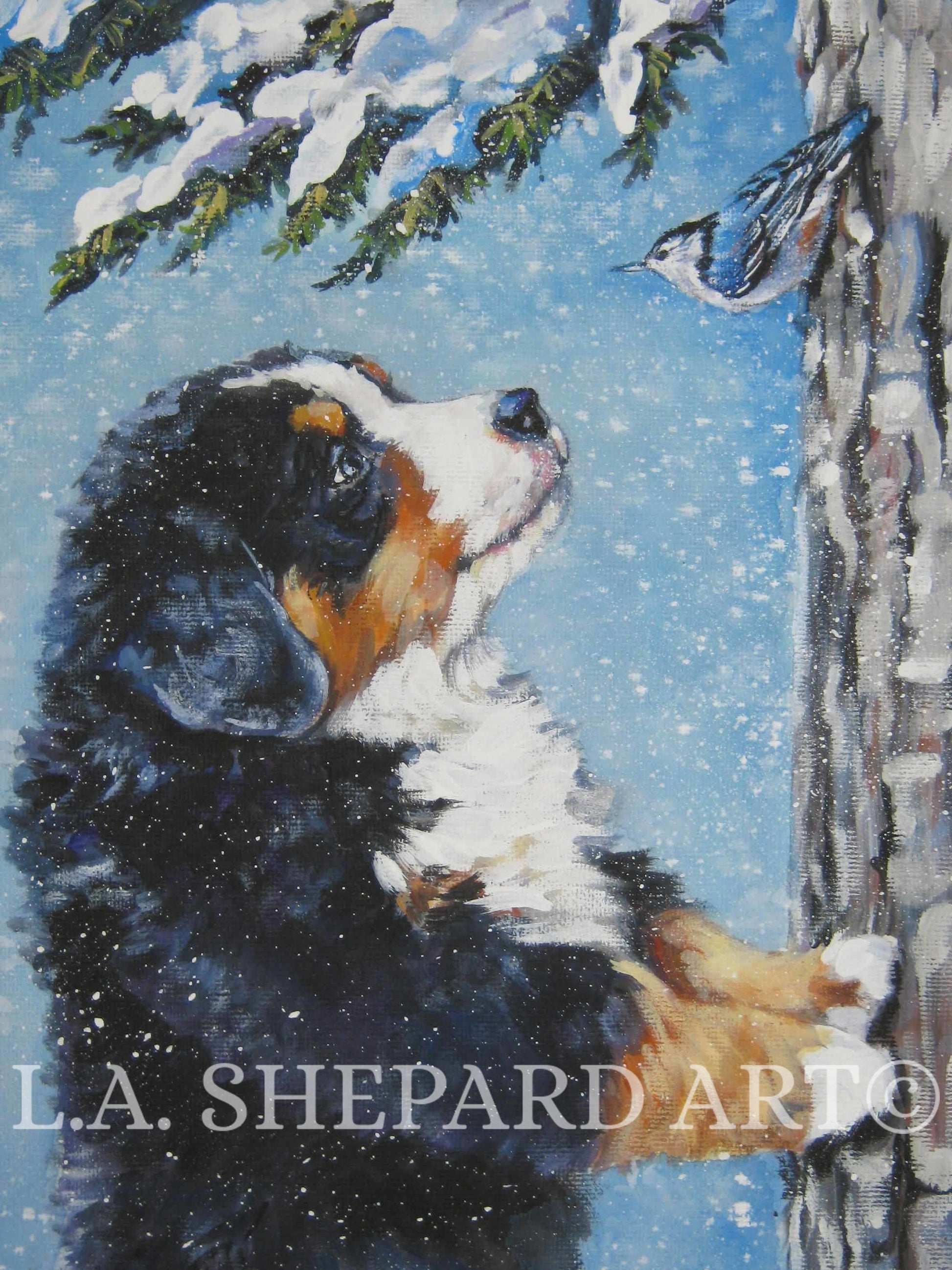 Bernese Mountain DOG canvas PRINT of LAShepard painting 8x10" xmas puppy holiday ART