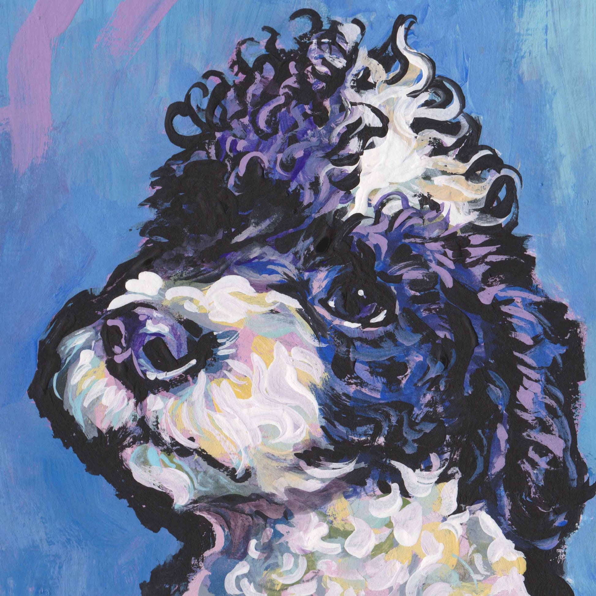 black and white POODLE dog portrait art PRINT pop art bright colorful 12x12"