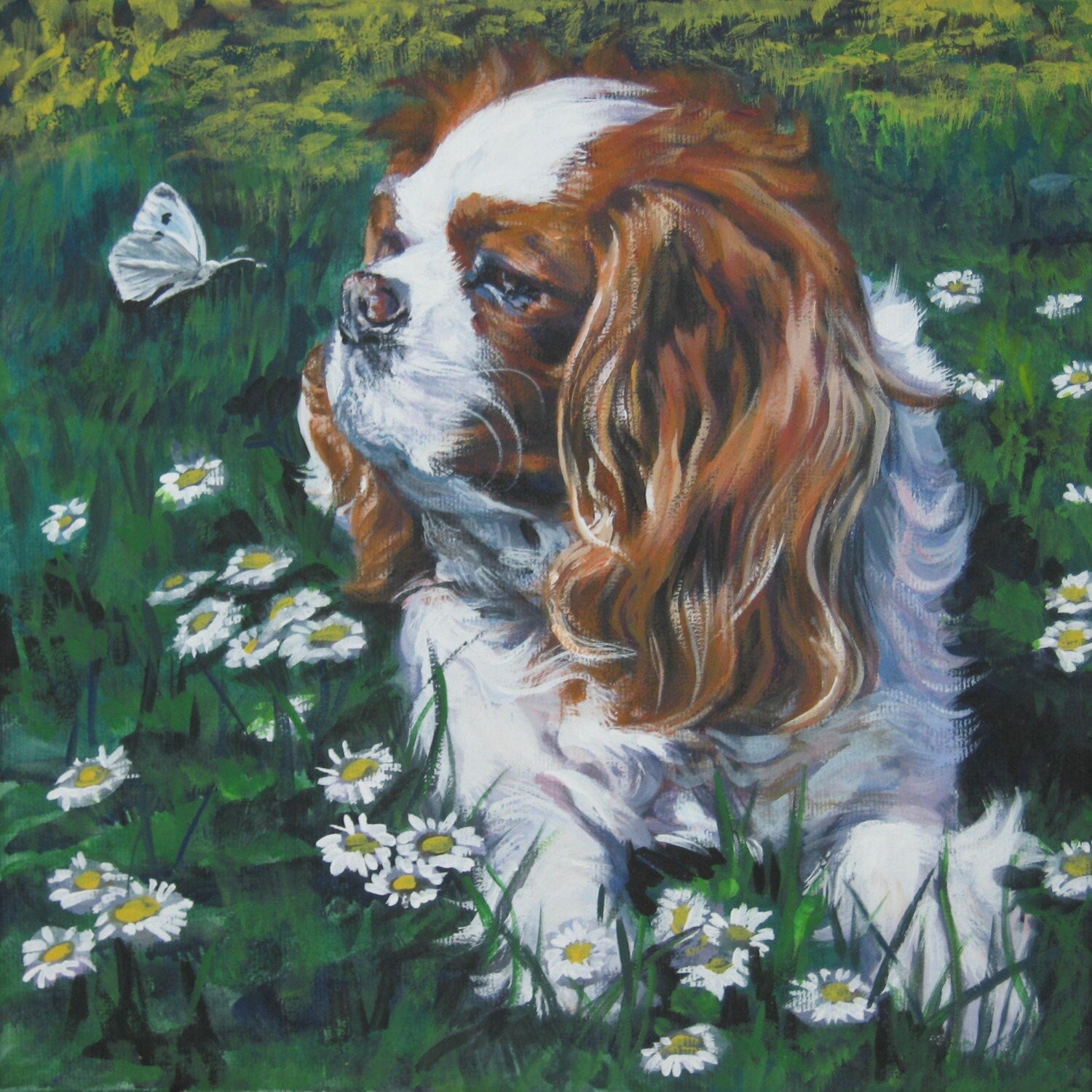 blenheim cavalier king charles spaniel dog art CANVAS print of LA Shepard painting 8x8