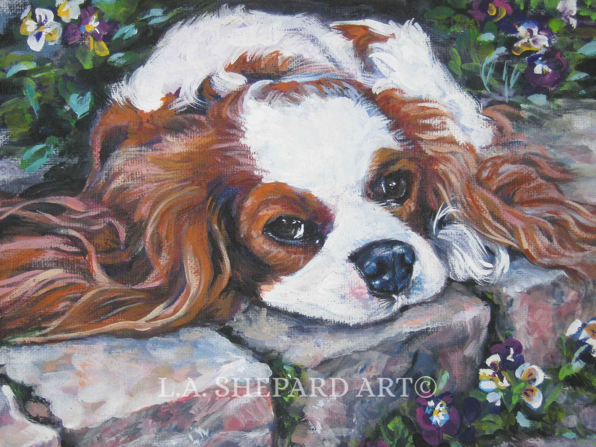 Blenheim Cavalier King Charles Spaniel dog art portrait print of LA Shepard painting 12X16