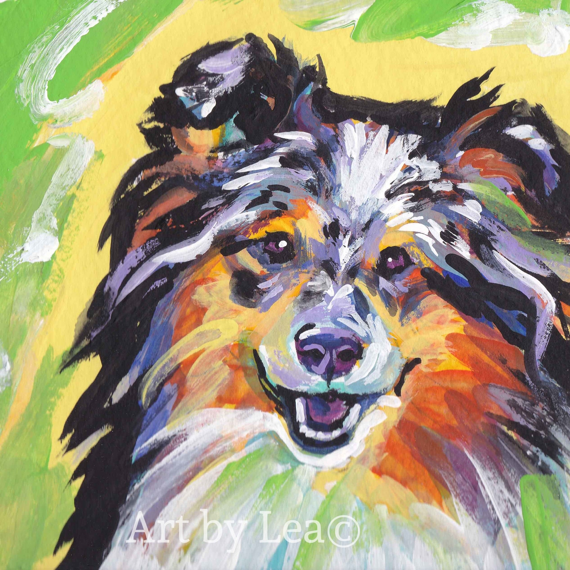 Blue Merle Shetland Sheepdog Sheltie art print of pop art dog painting bright colors 12x12"