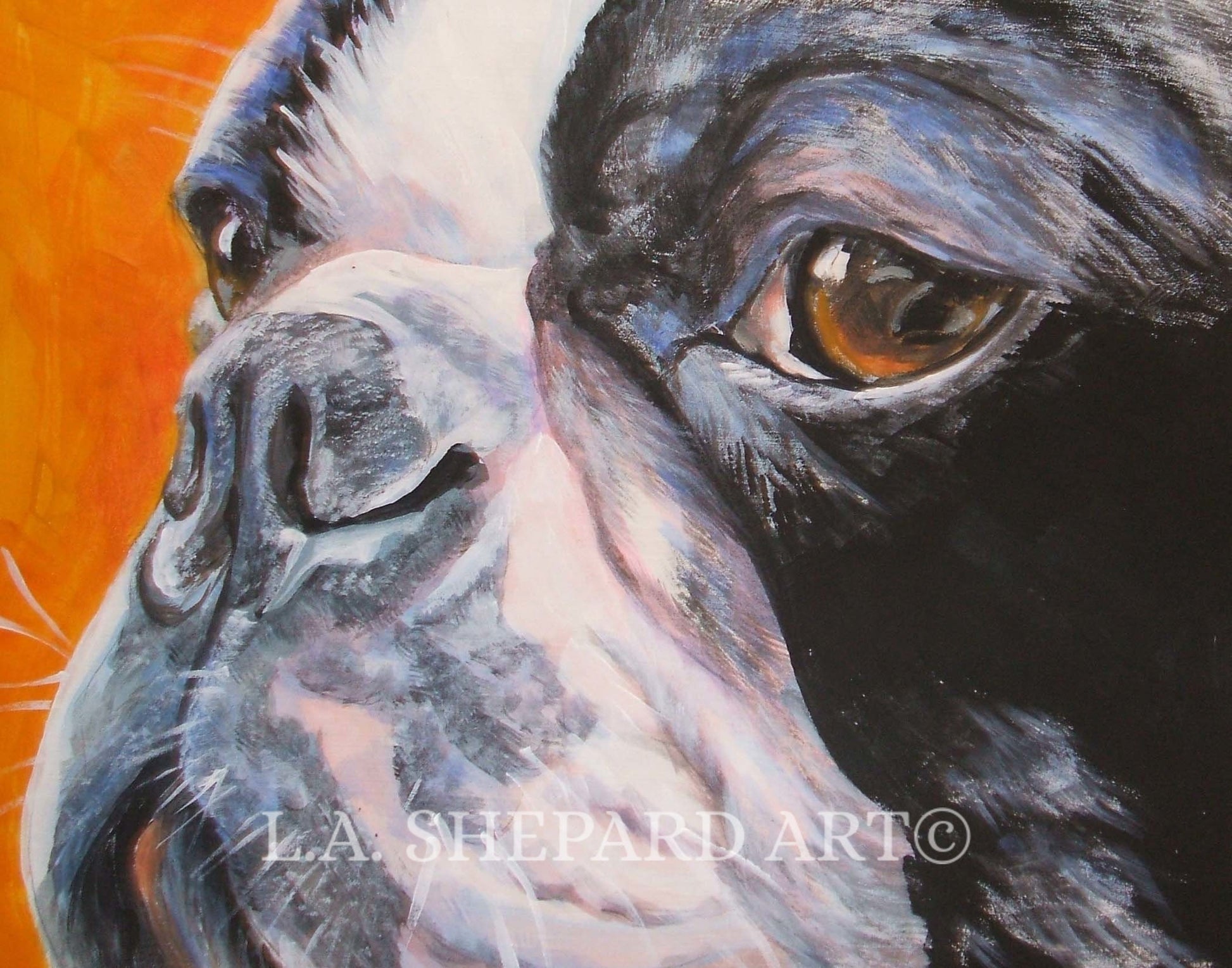 BOSTON TERRIER dog art PORTRAIT print of LAShepard painting 8x10