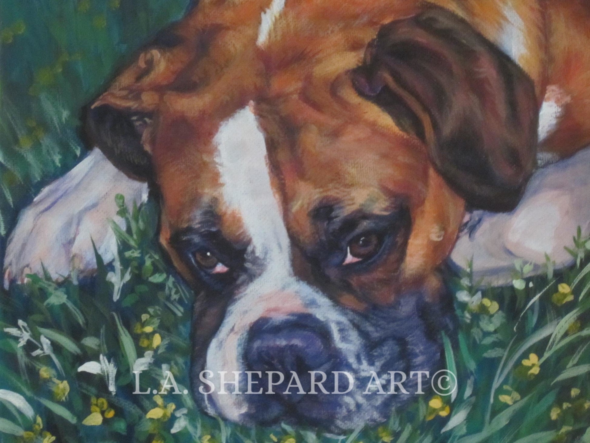 BOXER DOG ART portrait canvas print of LAShepard painting 8x10