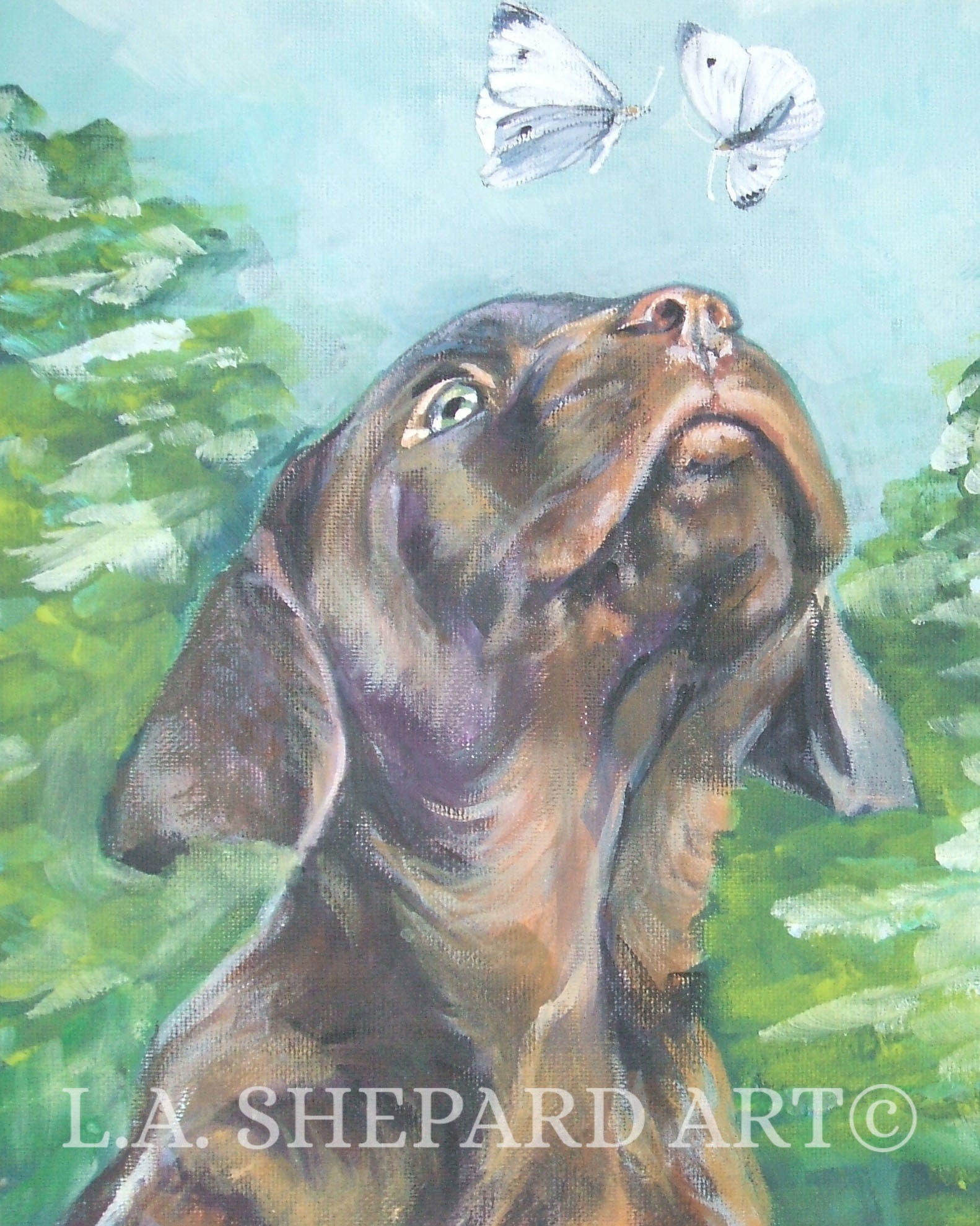 CHOCOLATE LAB PUP Labrador retriever dog art canvas print of LAShepard painting 8x10