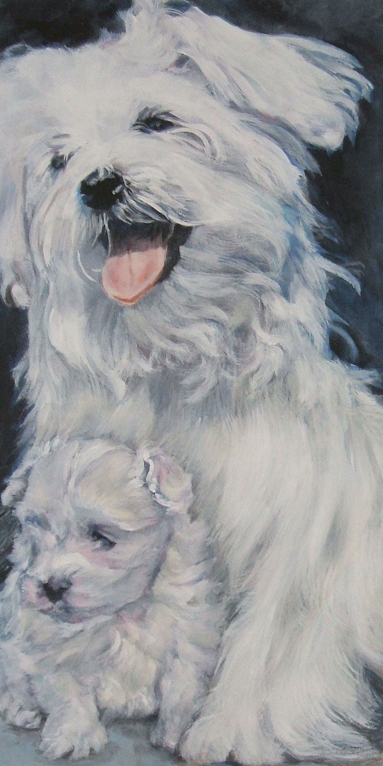 dog art Maltese portrait CANVAS print of LA Shepard painting 9x18