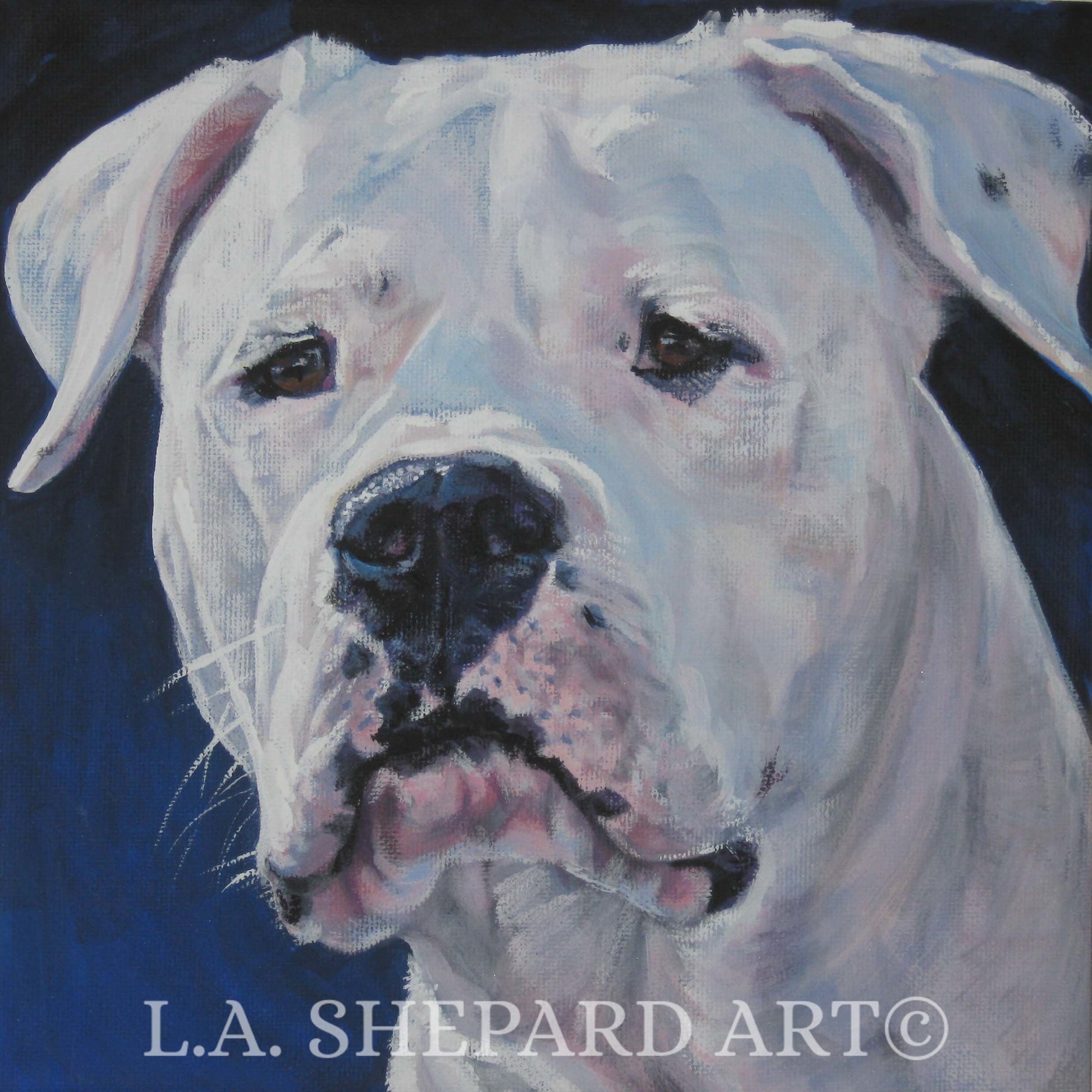 DOGO ARGENTINO dog portrait art PRINT of LAShepard painting 12x12