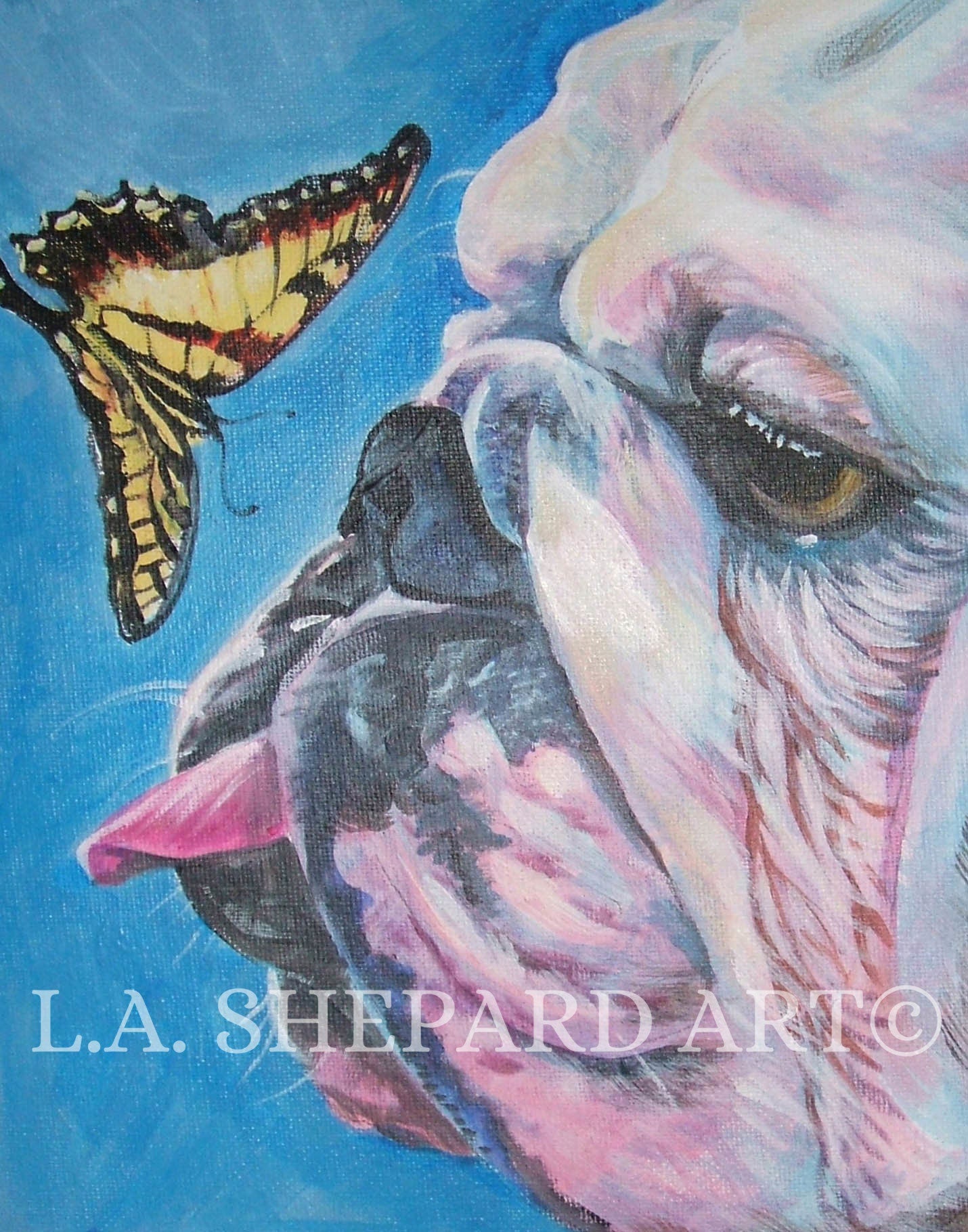 ENGLISH BULLDOG dog art portrait canvas PRINT of LAShepard painting 11x14"