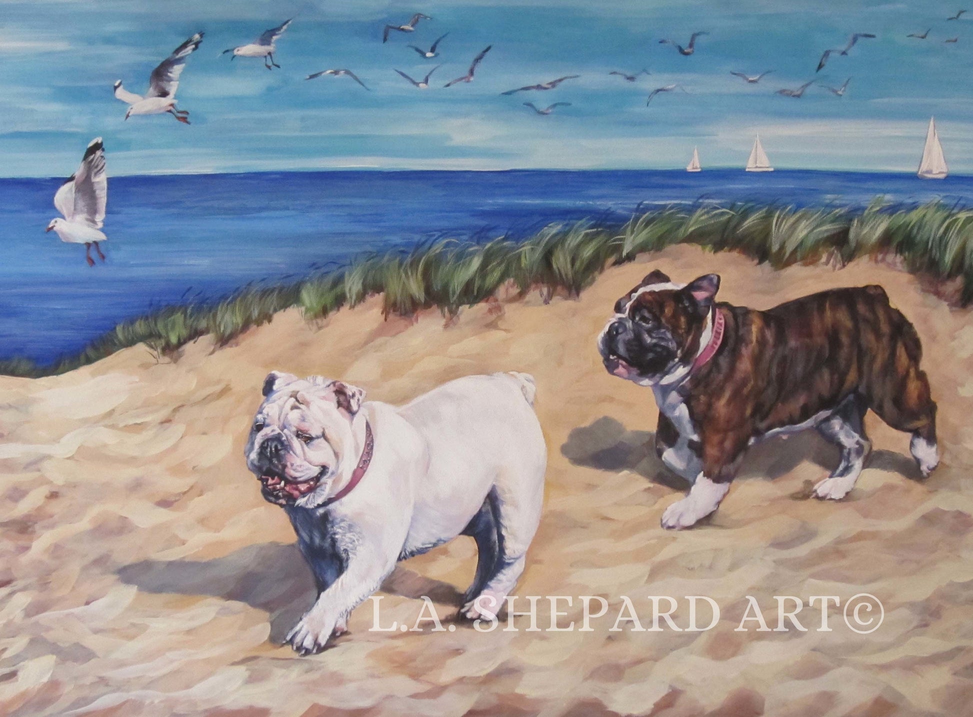 ENGLISH BULLDOG dog art portrait canvas PRINT of LAShepard painting 9.5x7"