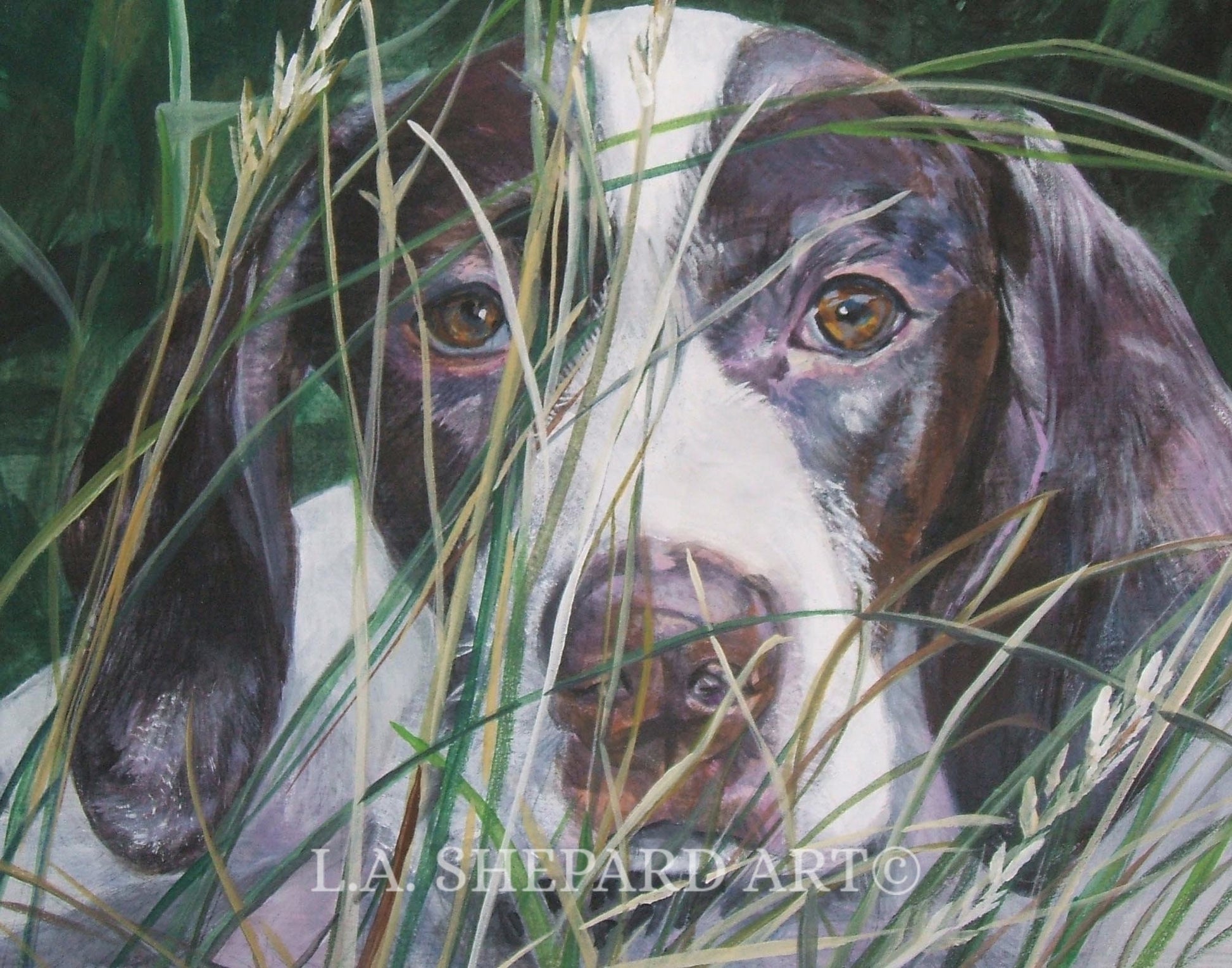 ENGLISH POINTER dog portrait art canvas PRINT of LAShepard painting 11x14