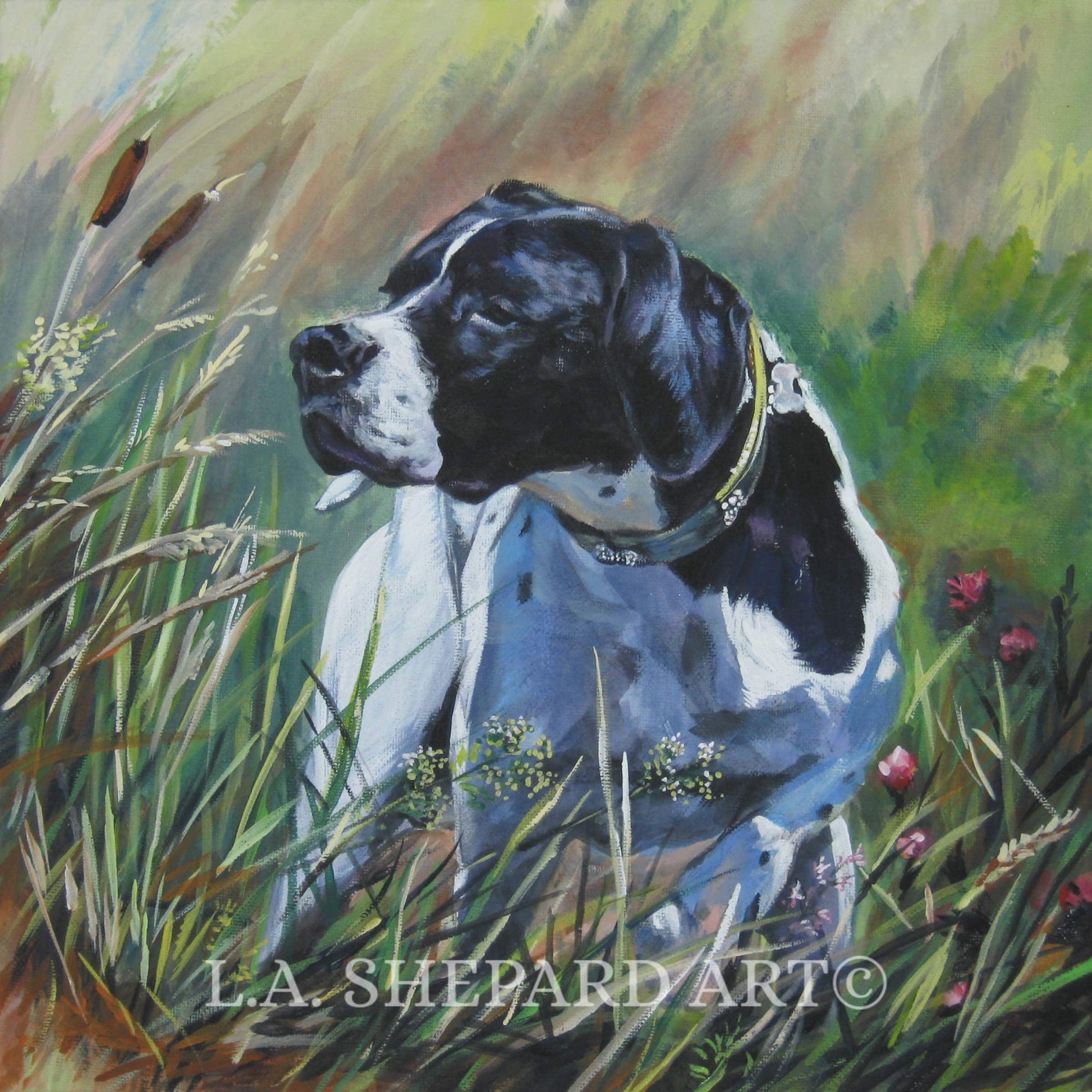 English POINTER dog portrait art canvas print of LAShepard painting 12x12"
