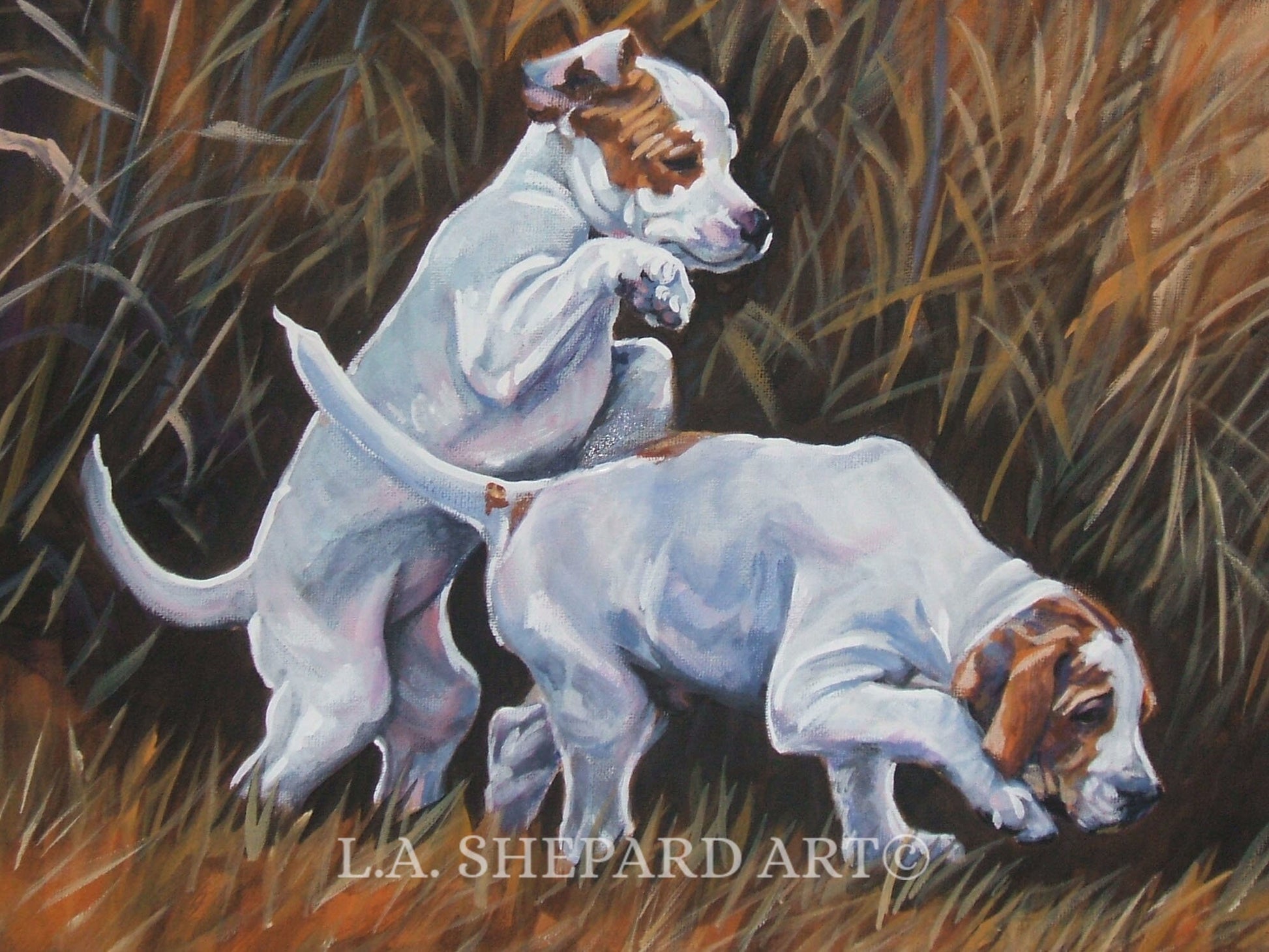 English POINTER puppies dog art canvas PRINT of LA Shepard painting 12x16