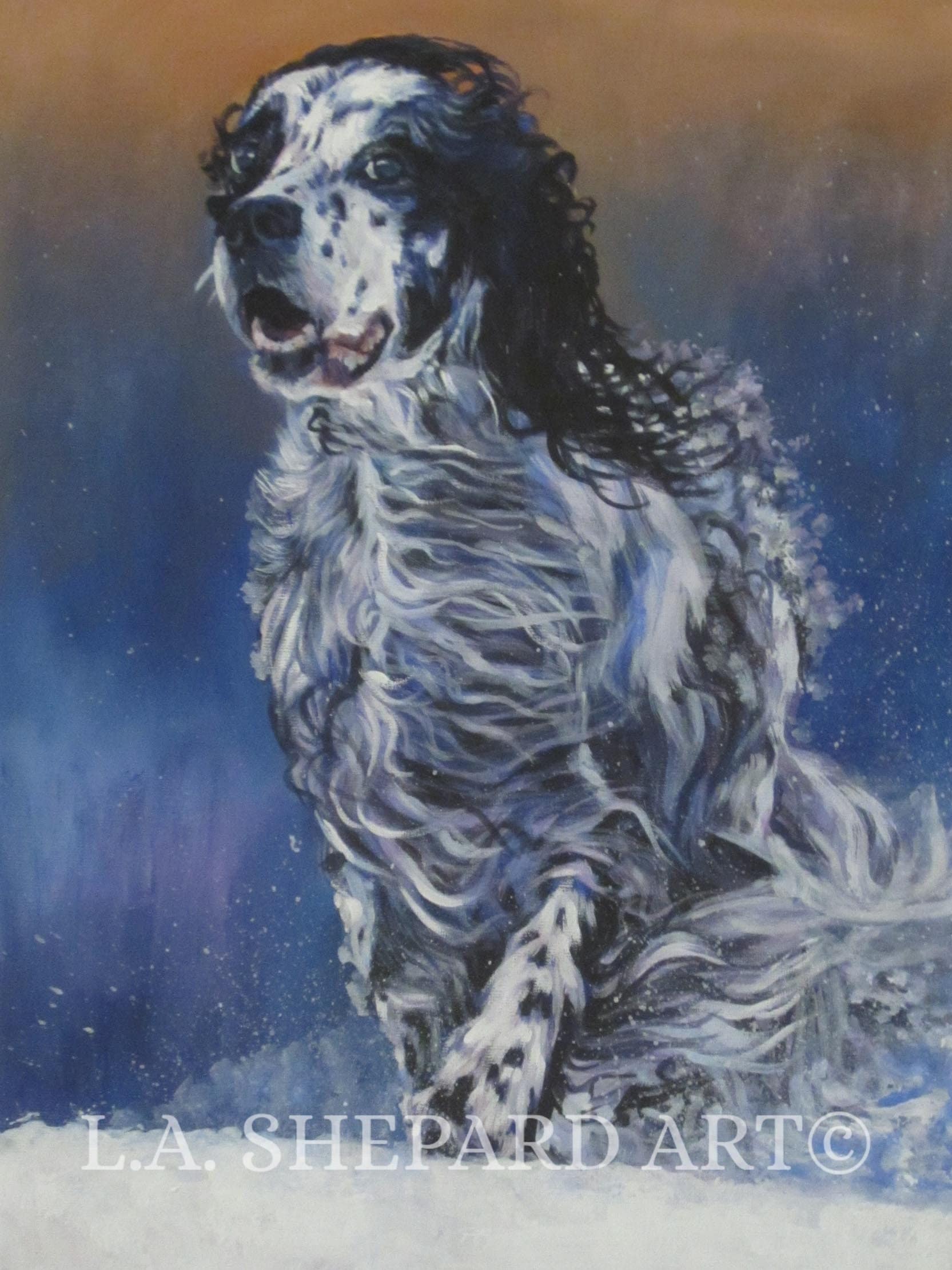 English SETTER dog ART canvas PRINT of LAShepard painting 12x16"