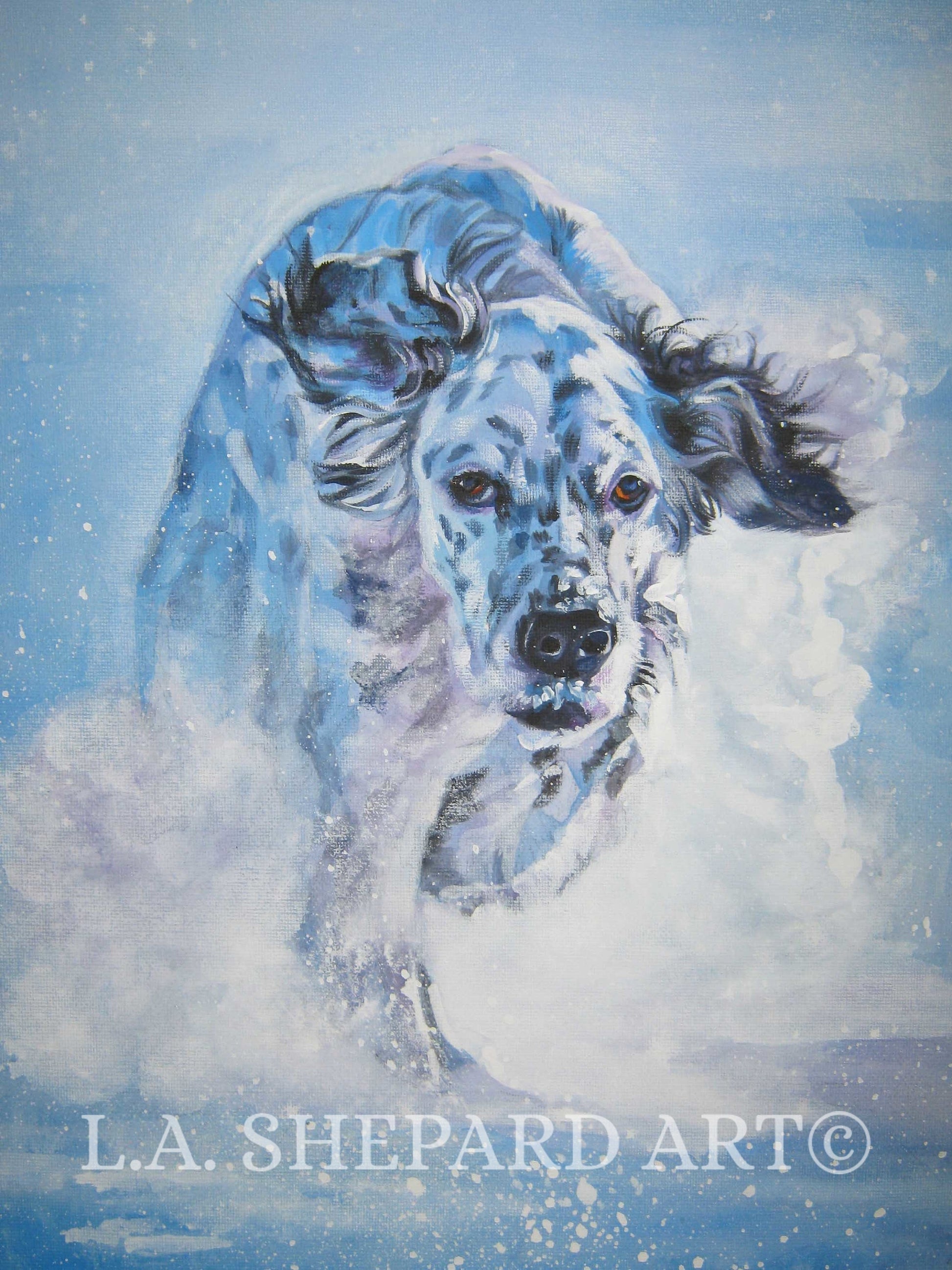 English Setter DOG ART portrait canvas PRINT of LAShepard painting 11x14"