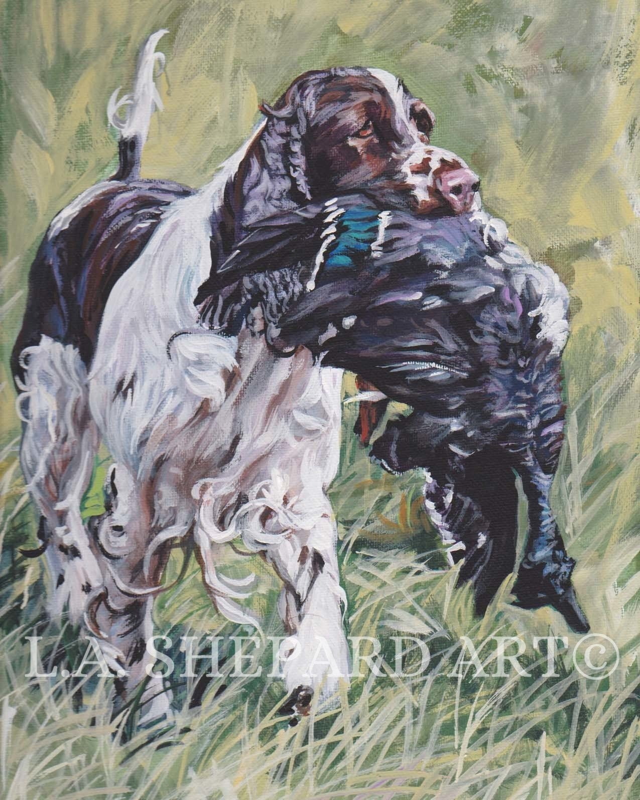 English SPRINGER Spaniel dog portrait art canvas PRINT of LAShepard painting 8x10" hunting dog