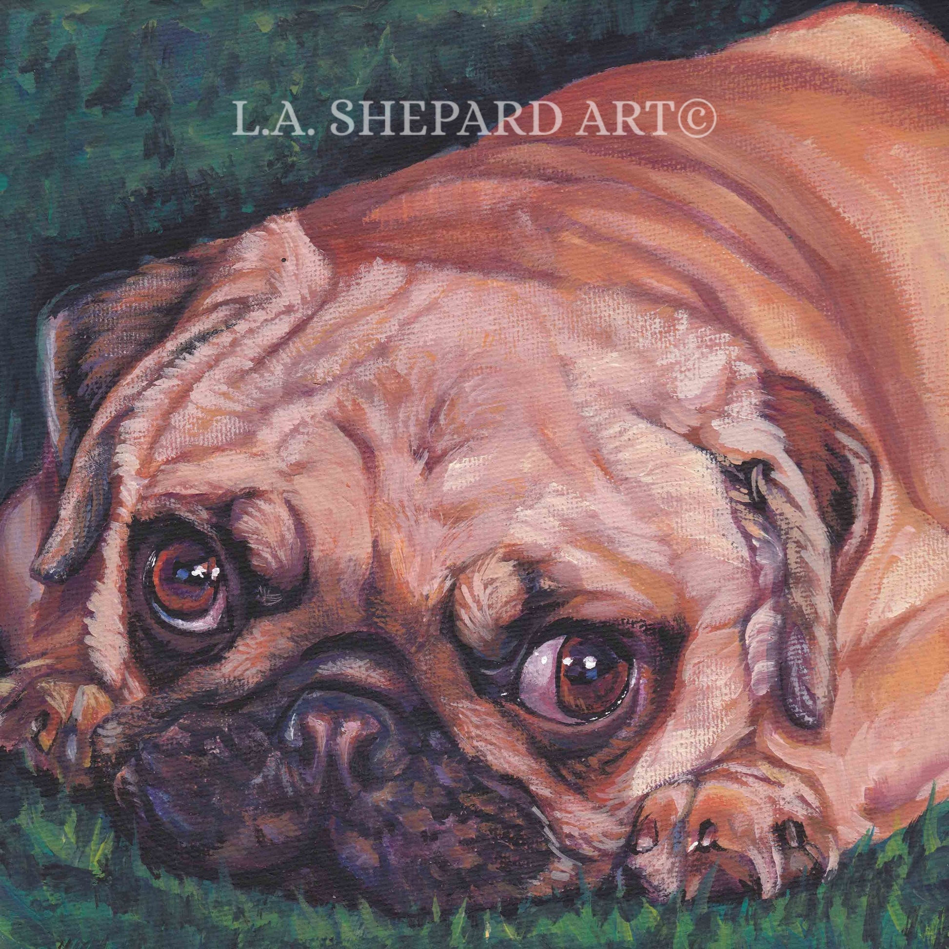 fawn PUG DOG ART portrait canvas Print of LAShepard painting 8x8"