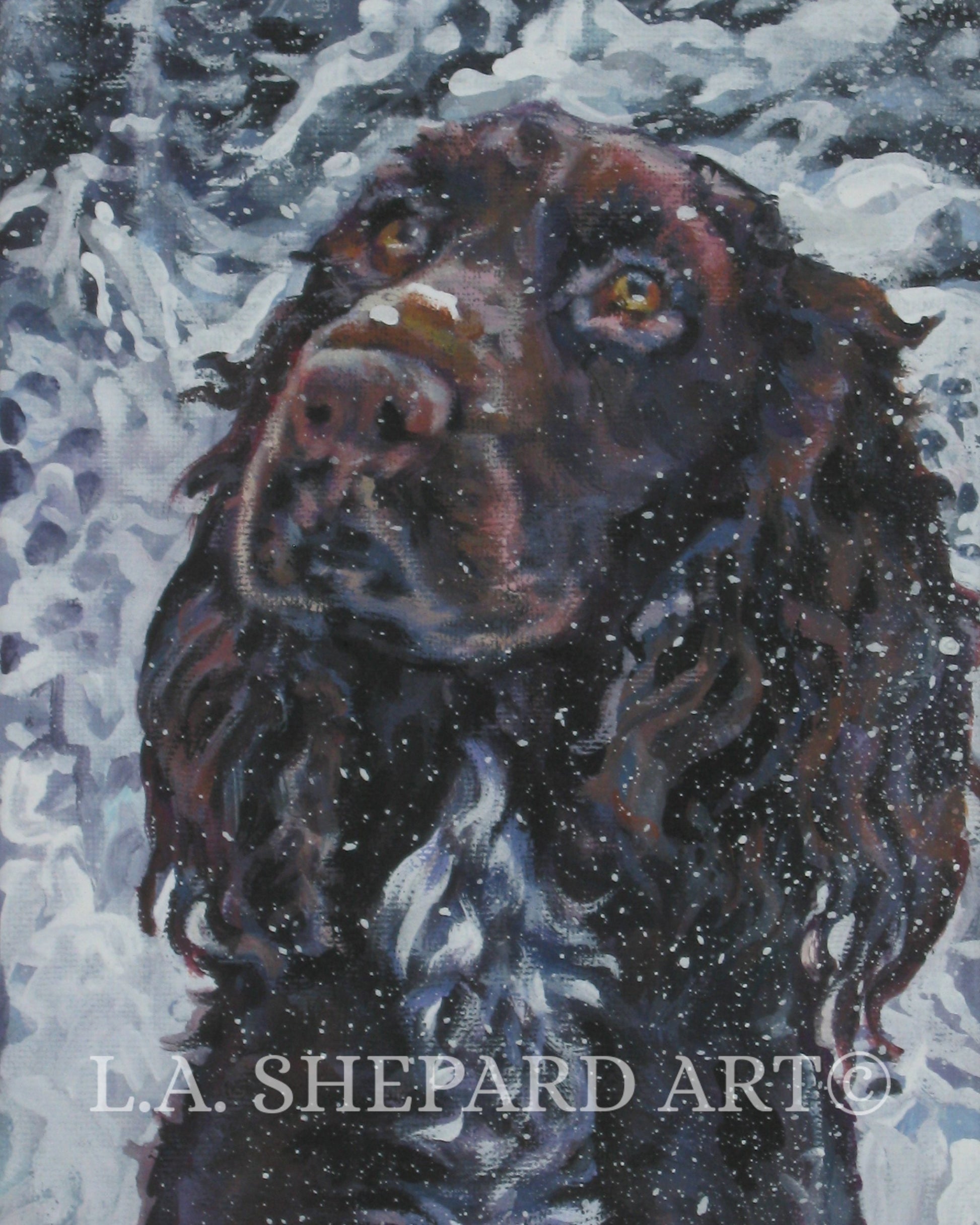 FIELD SPANIEL dog art portrait PRINT of LAShepard painting 8x10