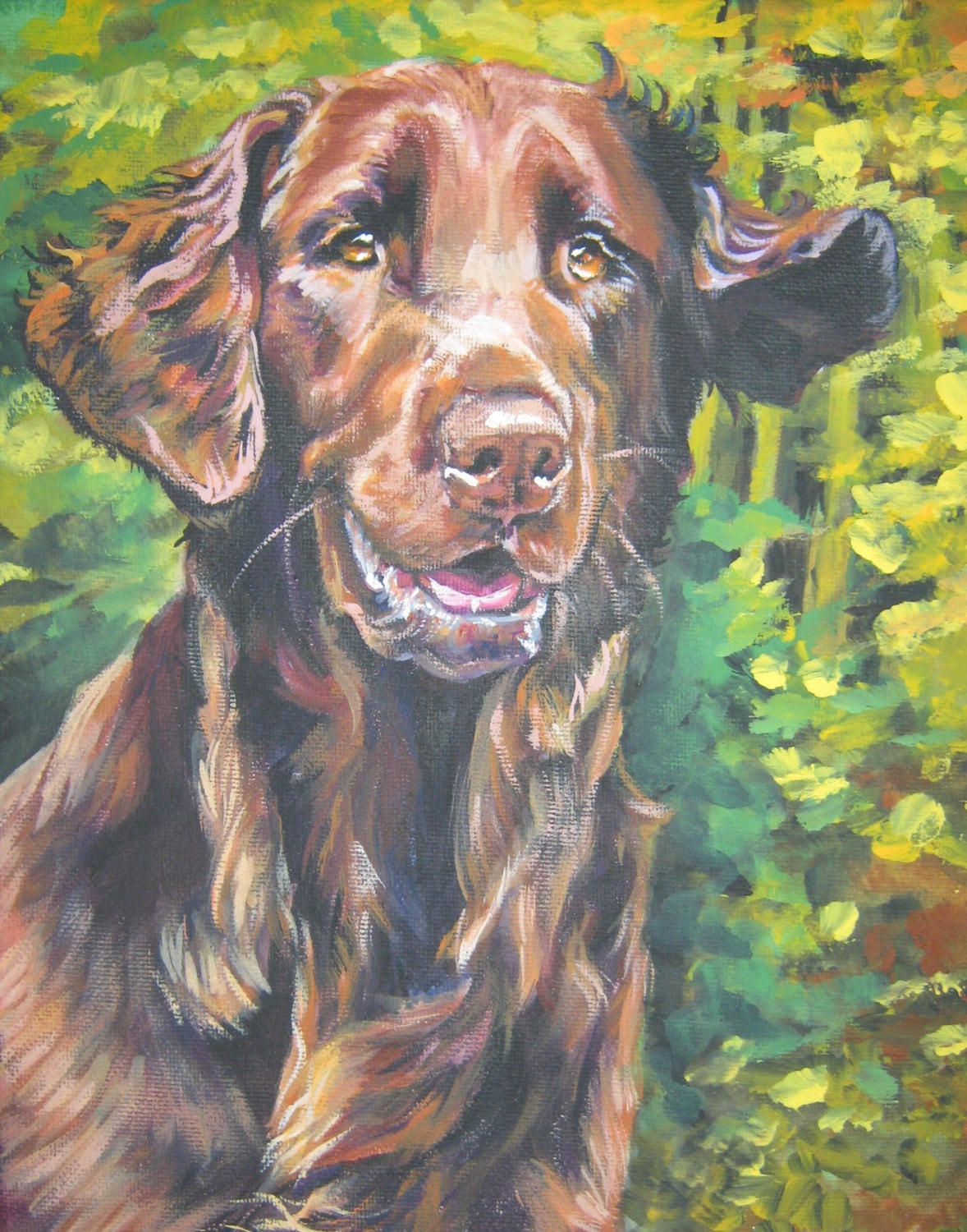 FLAT COATED retriever dog art portrait canvas PRINT of LAShepard painting 11x14"