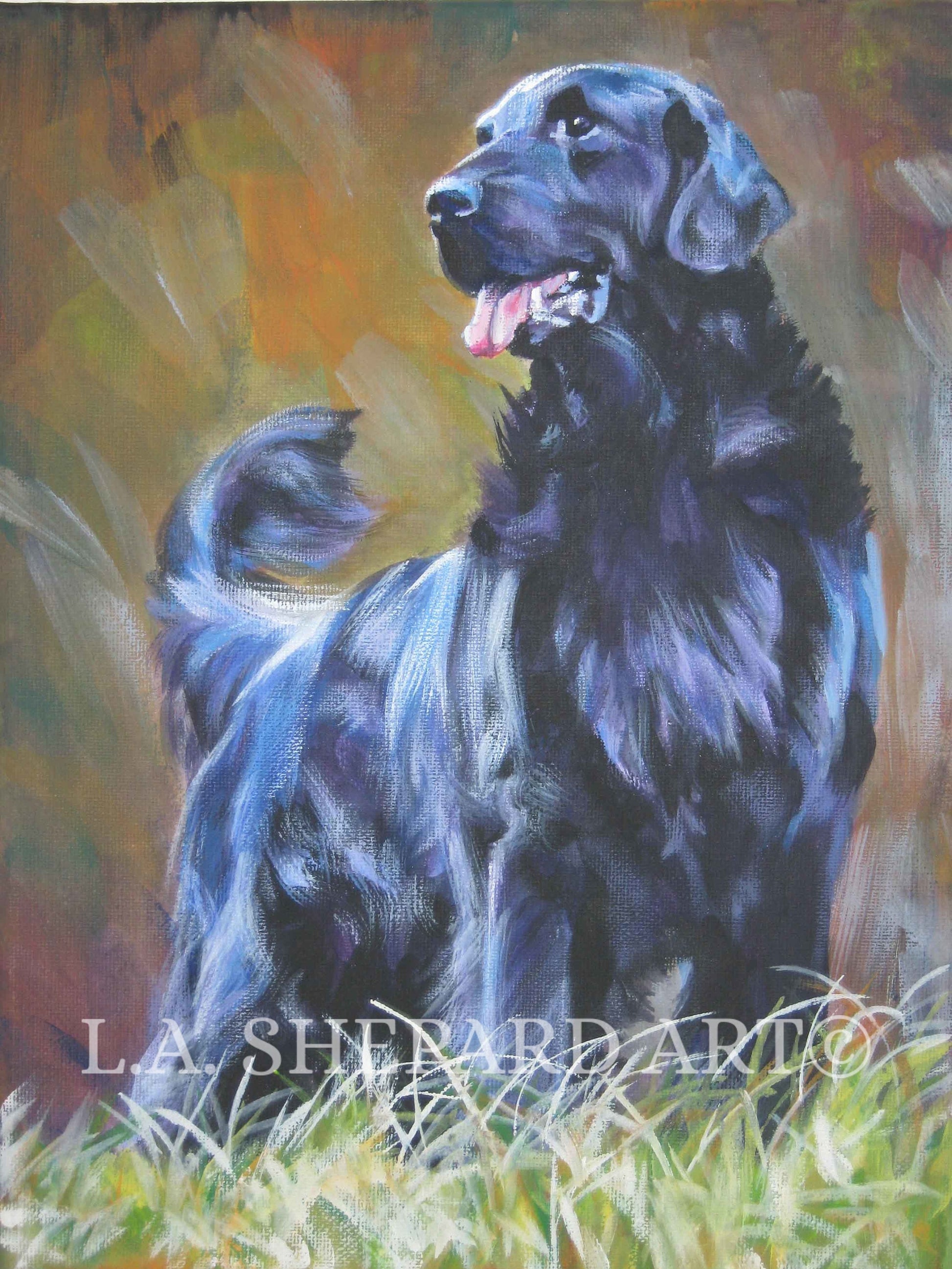 FLAT COATED RETRIEVER dog art print of LAShepard painting 8x10