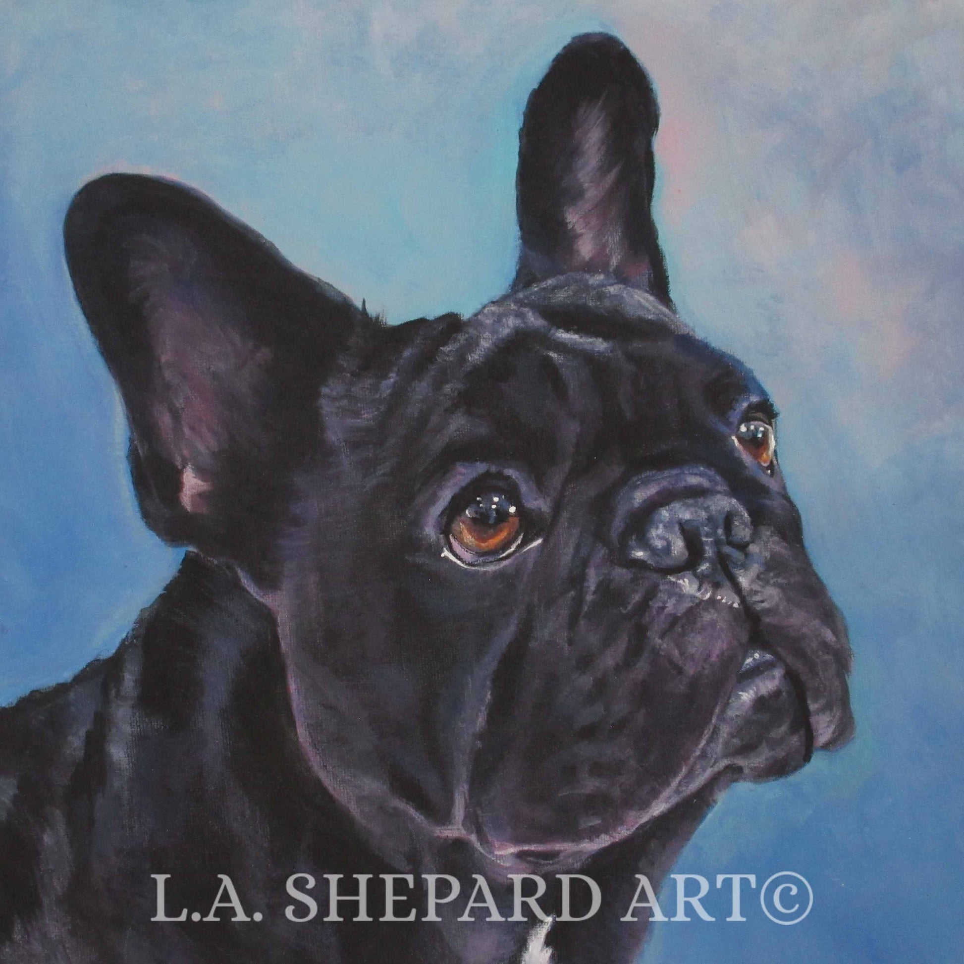 FRENCH BULLDOG art portrait canvas PRINT of LAShepard painting 8x8"