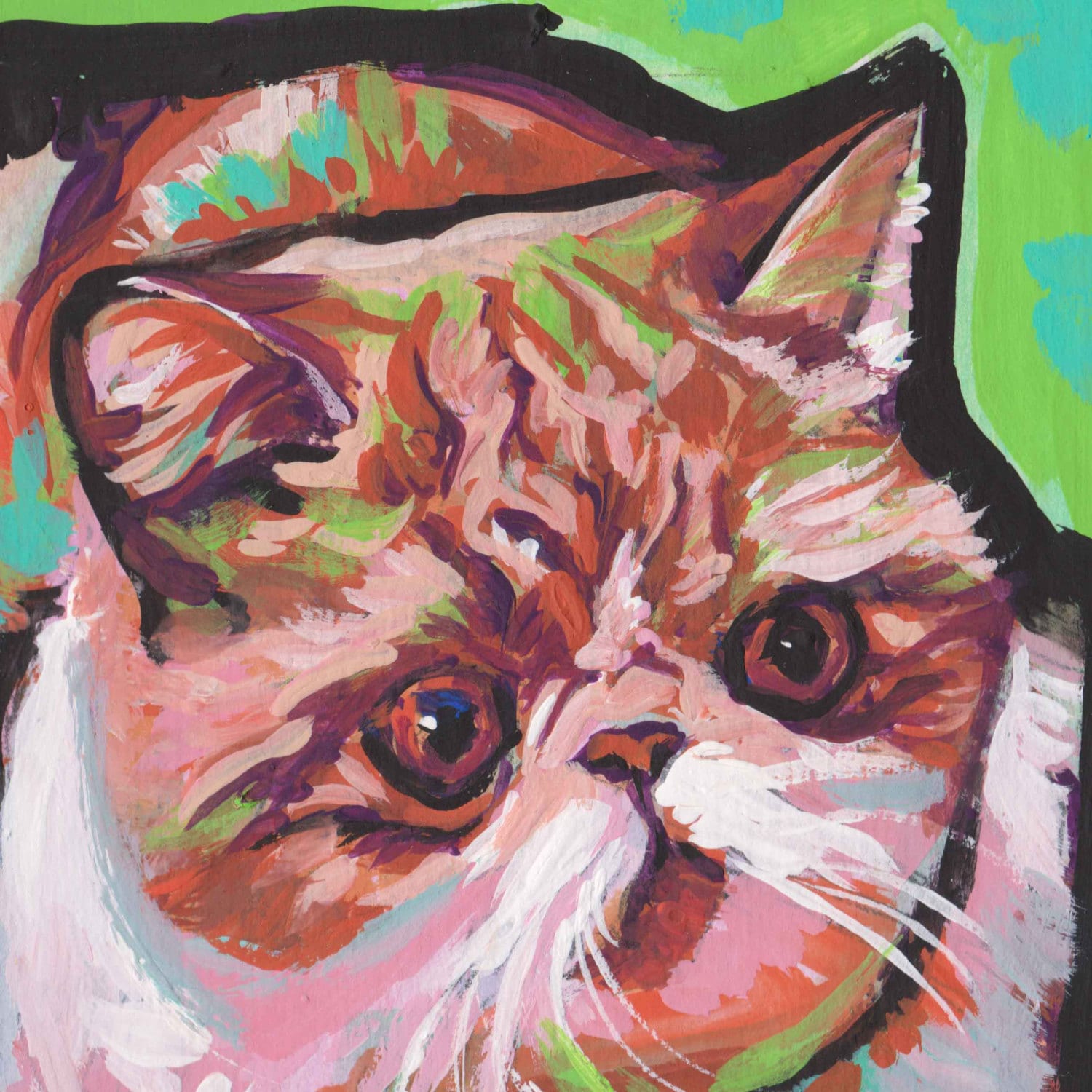 fun Cat portrait art print of bright colorful pop art 8x8" EXOTIC SHORTHAIR