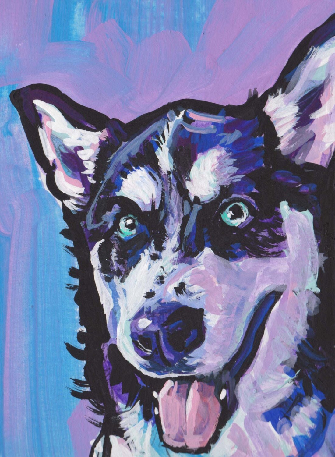 fun SIBERIAN HUSKY pop art print bright colorful dog portrait art 13x19"
