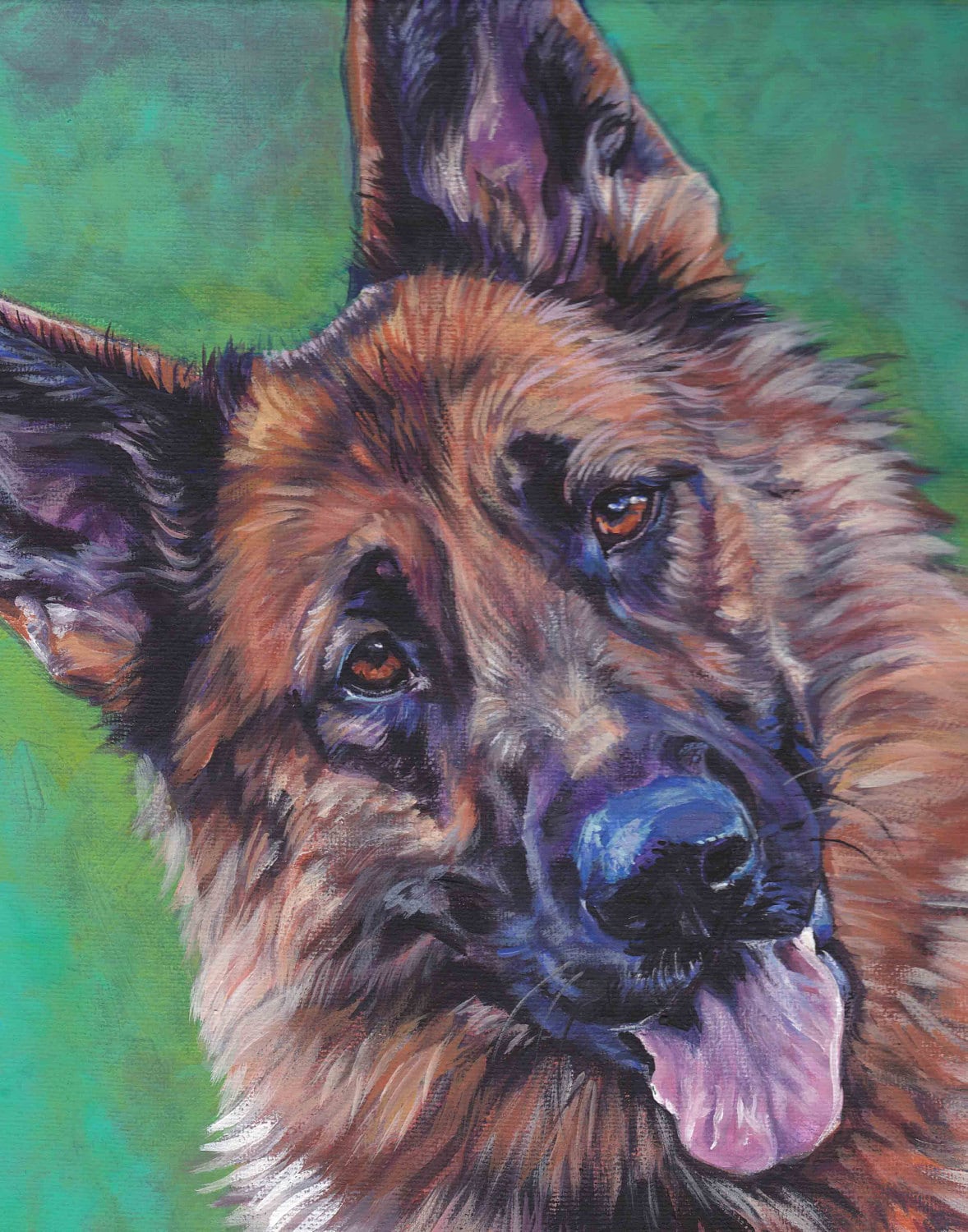 German Shepherd head study giclee canvas print by L.A.Shepard 11x14 inch