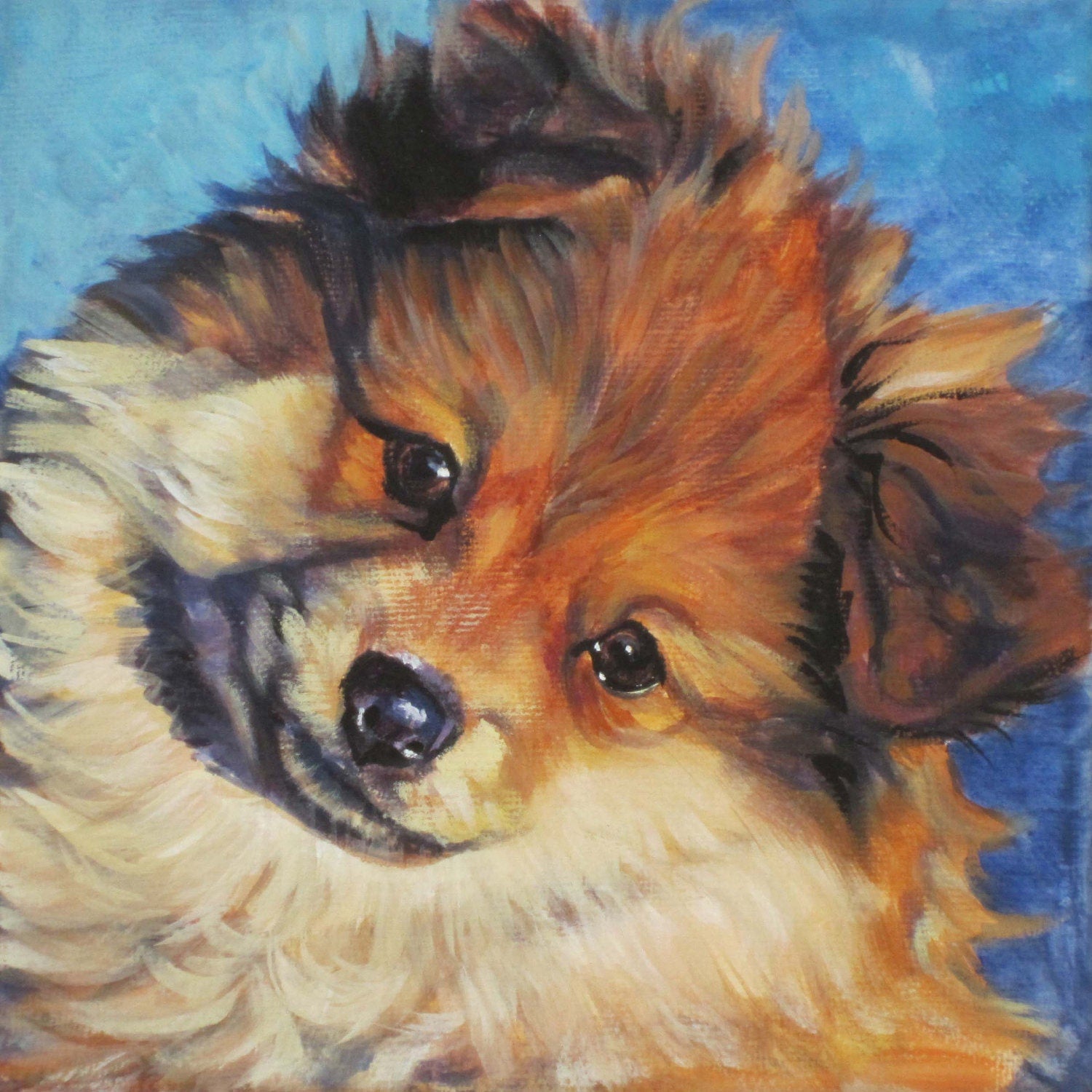 German Spitz pomeranian art print CANVAS print of LA Shepard painting 8x8