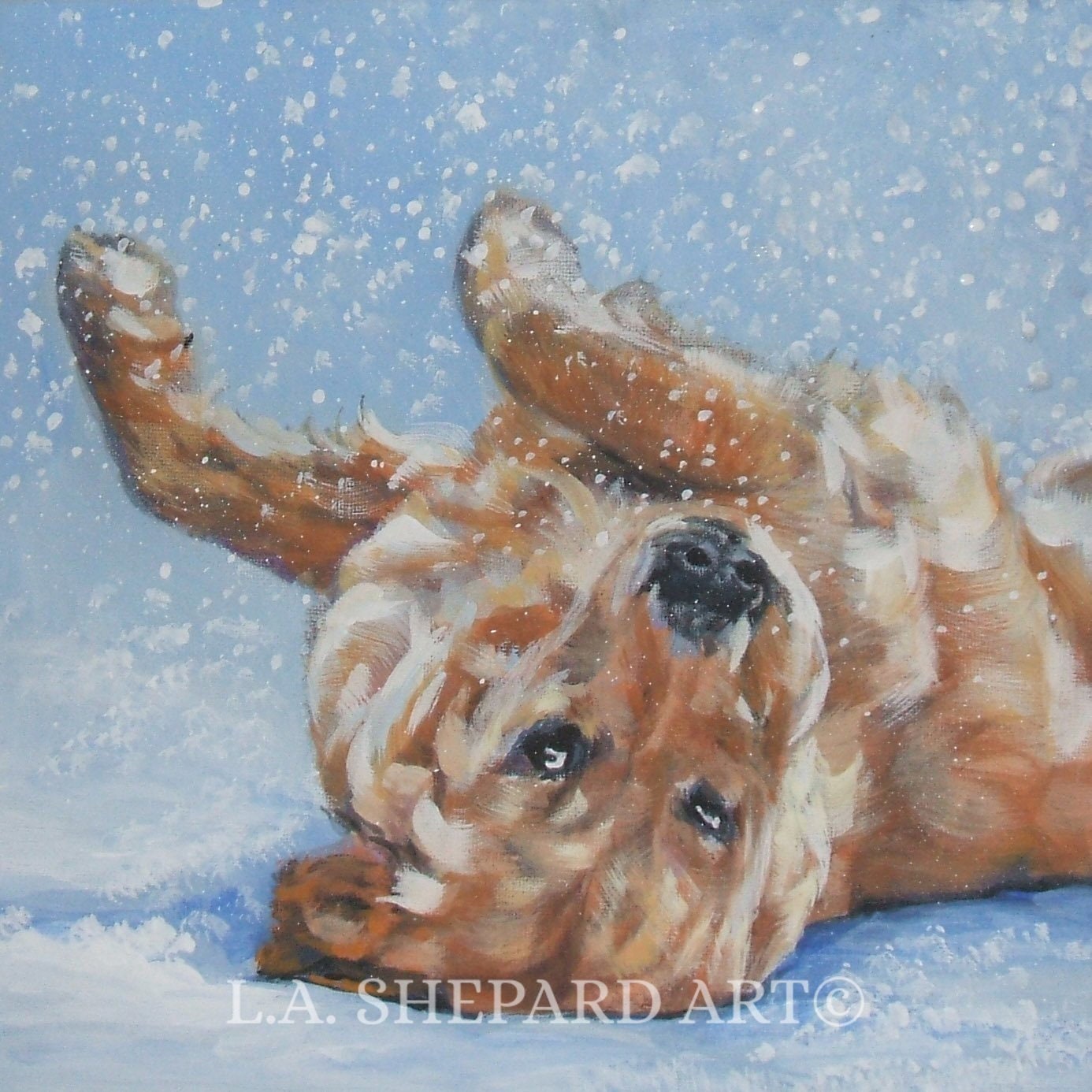 GOLDEN retriever dog ART canvas PRINT of LAShepard painting 8x8