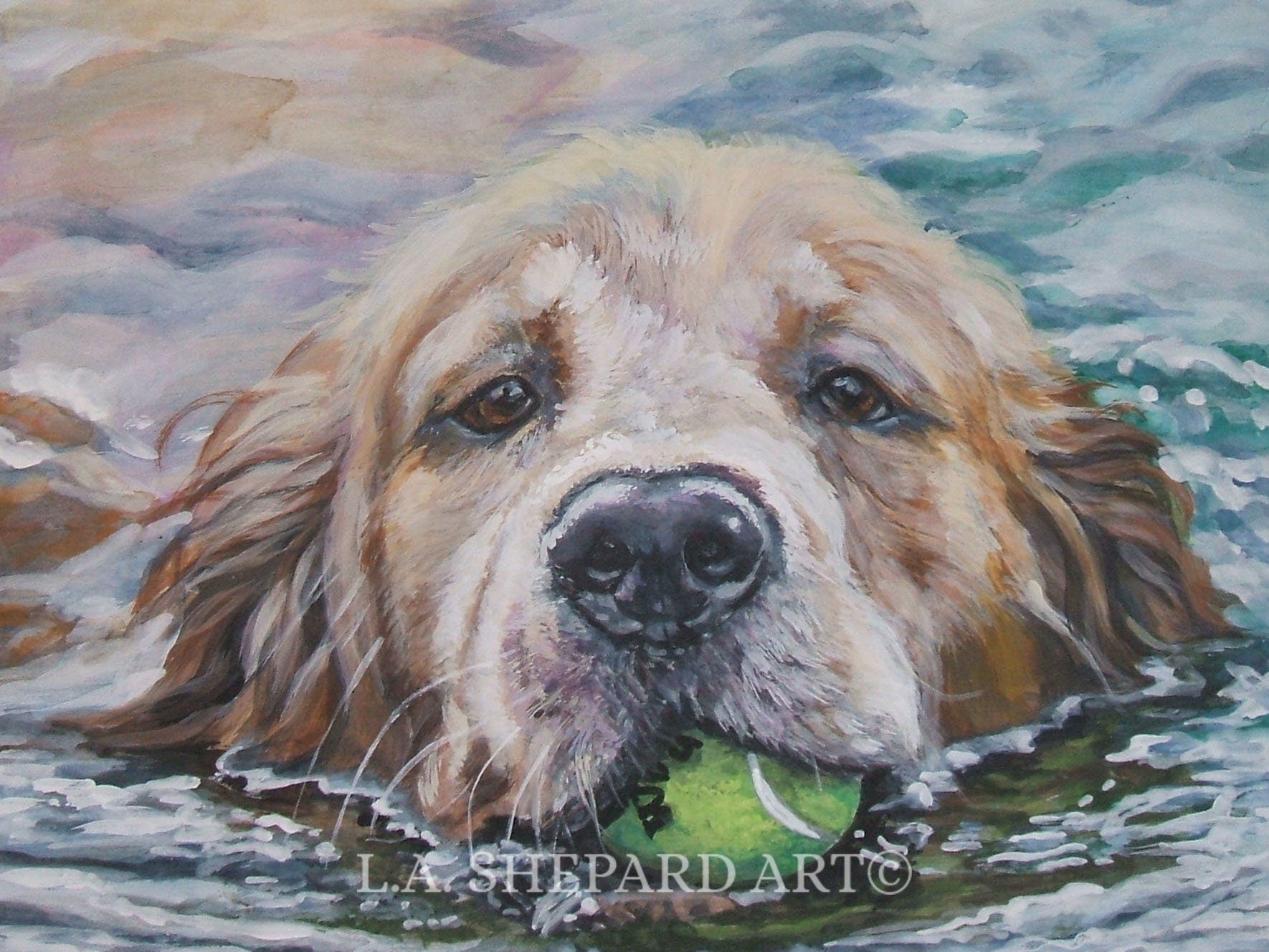 GOLDEN RETRIEVER dog portrait art canvas PRINT of LAShepard painting 12x16"
