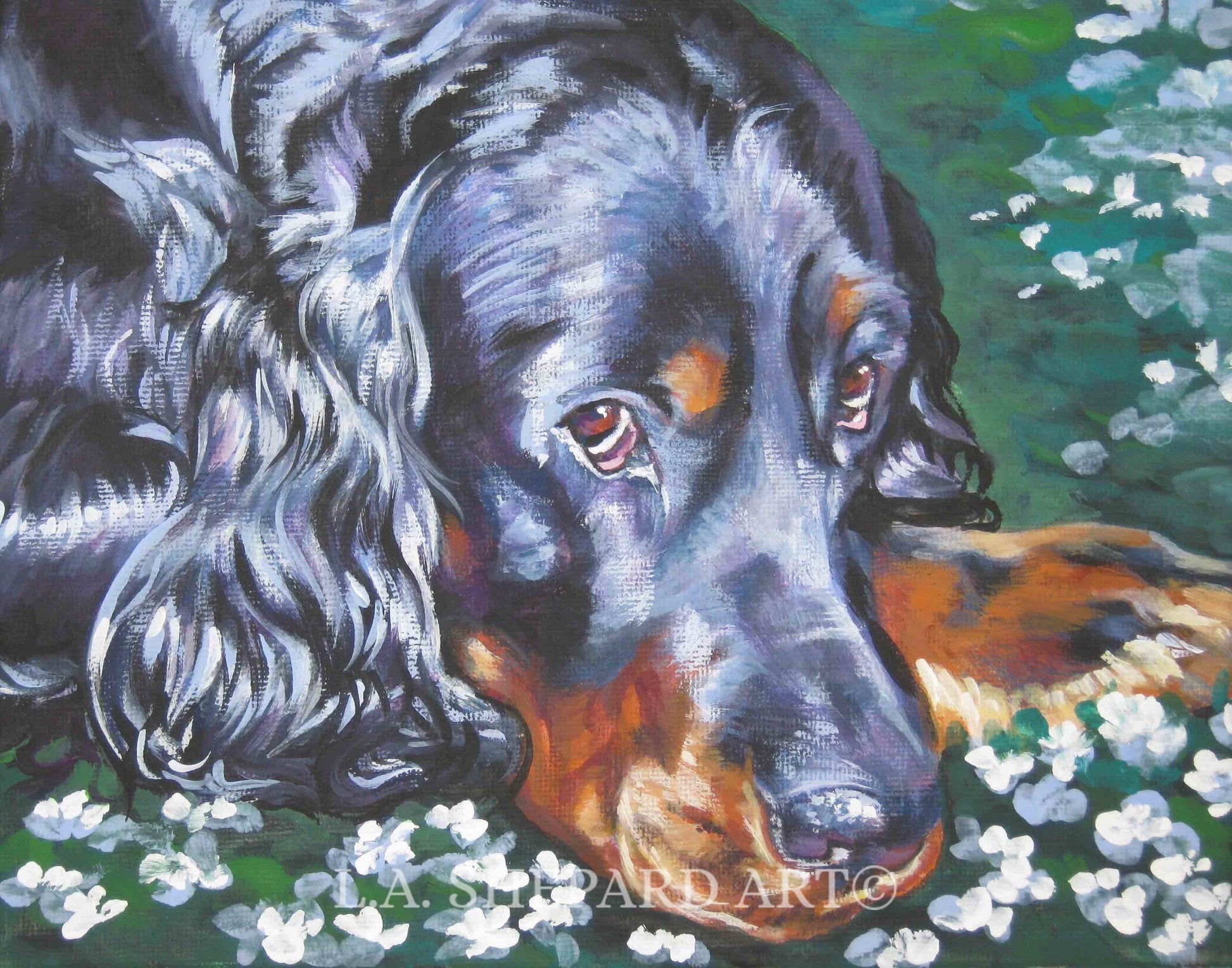 GORDON SETTER dog art portrait canvas PRINT of LAShepard painting 11x14