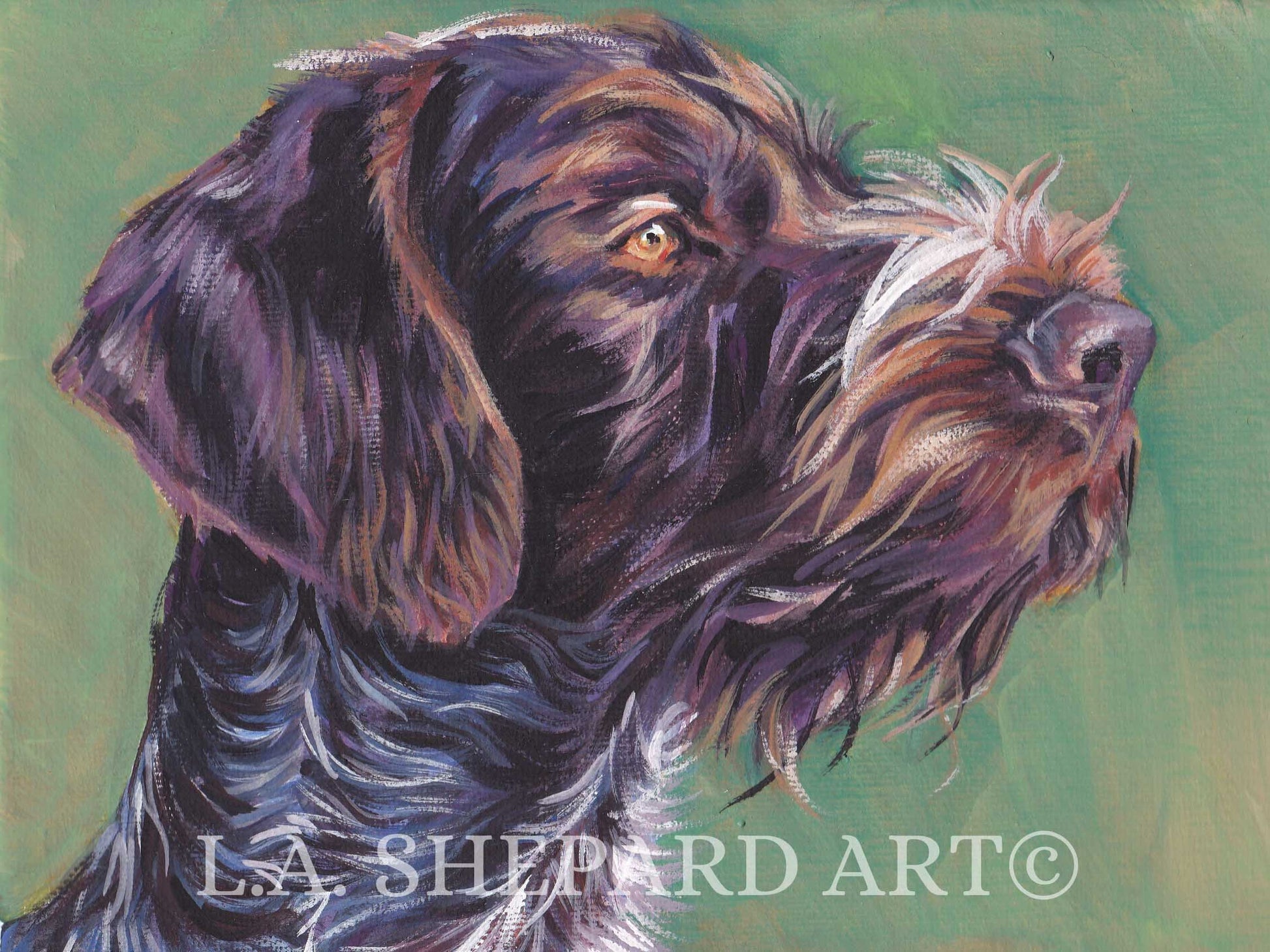 GWP German Wirehaired POINTER portrait dog art PRINT of LAShepard painting 8x10