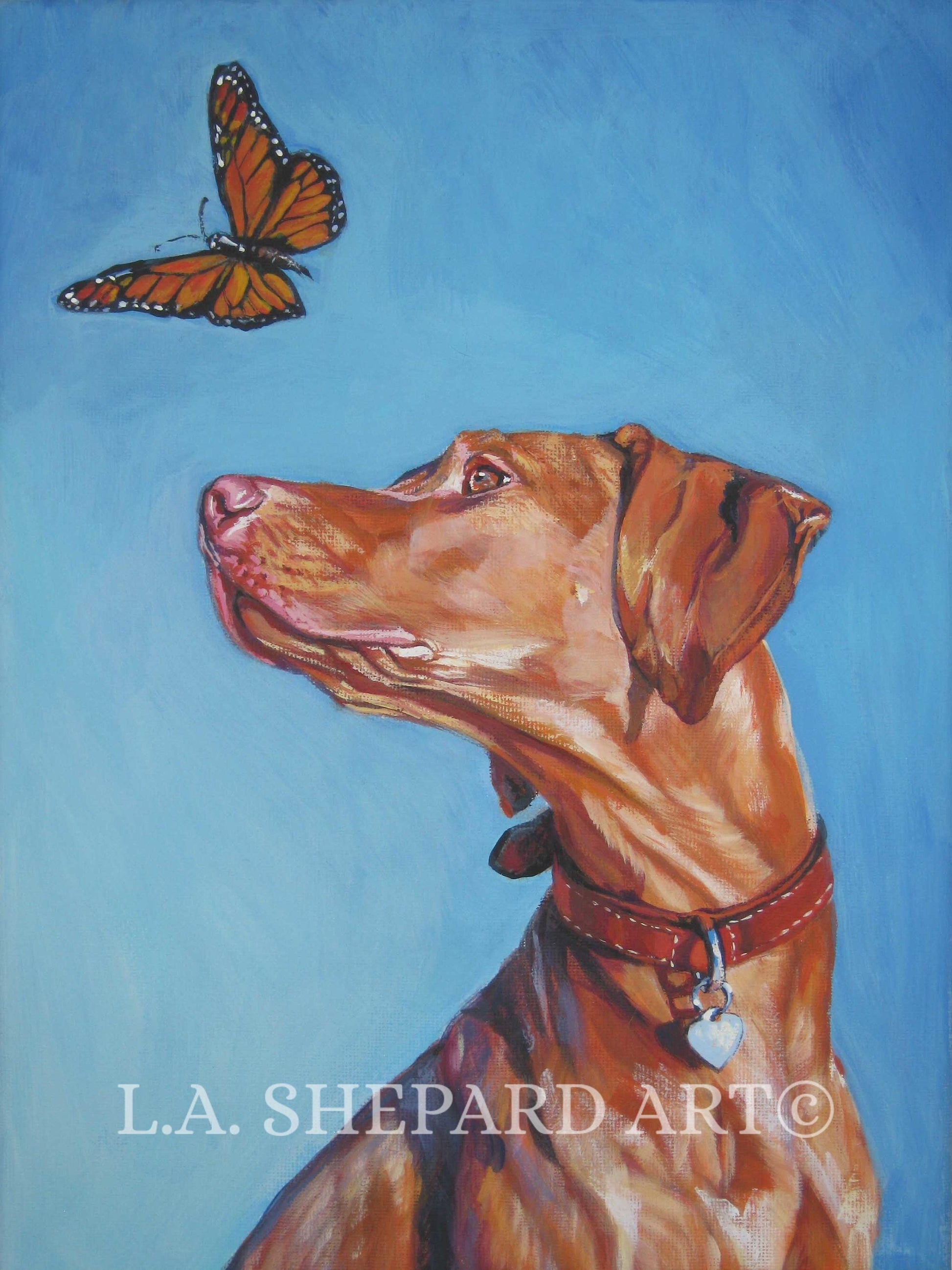 hungarian VIZSLA dog art PORTRAIT canvas PRINT of LAShepard painting 12x16