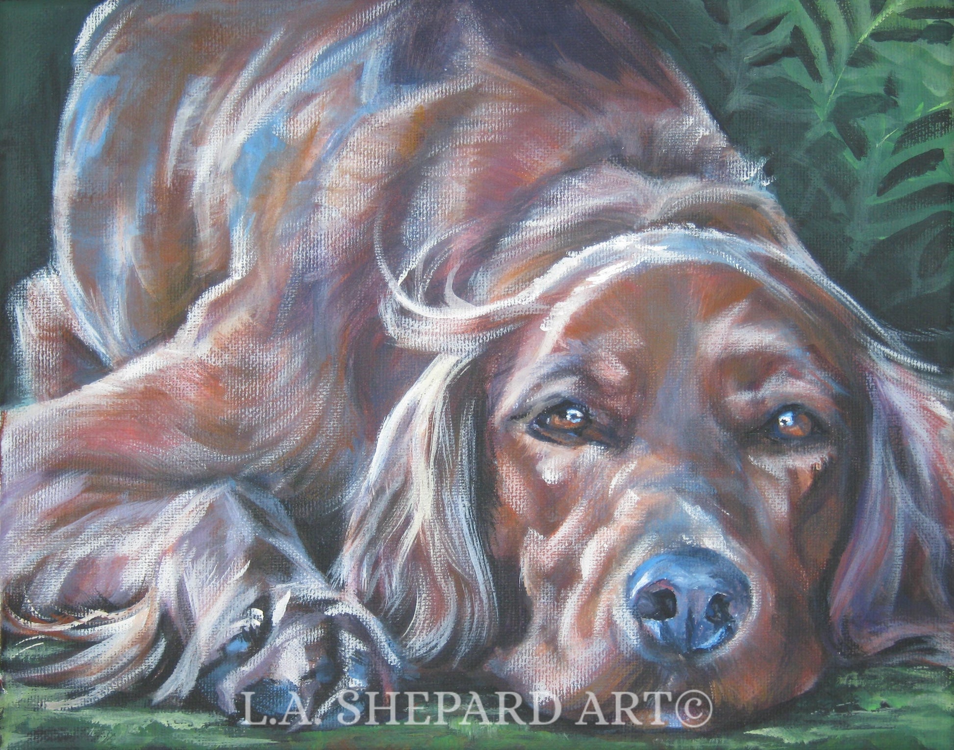 11 x 14 inch Irish Setter Dog GICLEE print by L.A.Shepard