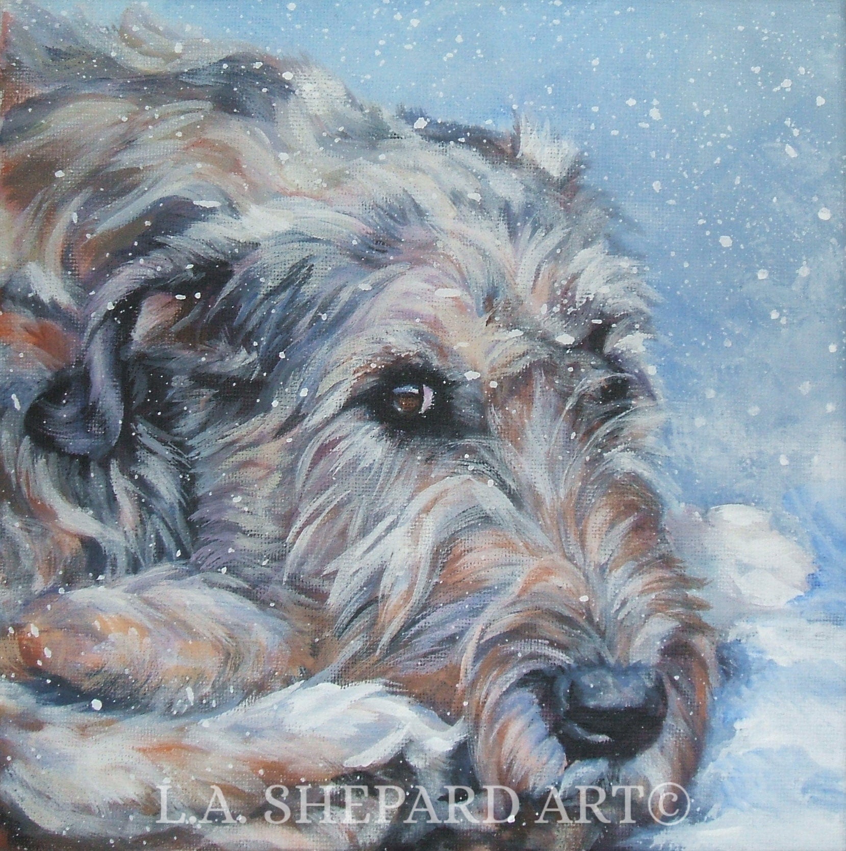Irish Wolfhound dog art portrait canvas print of LA Shepard painting 8x8