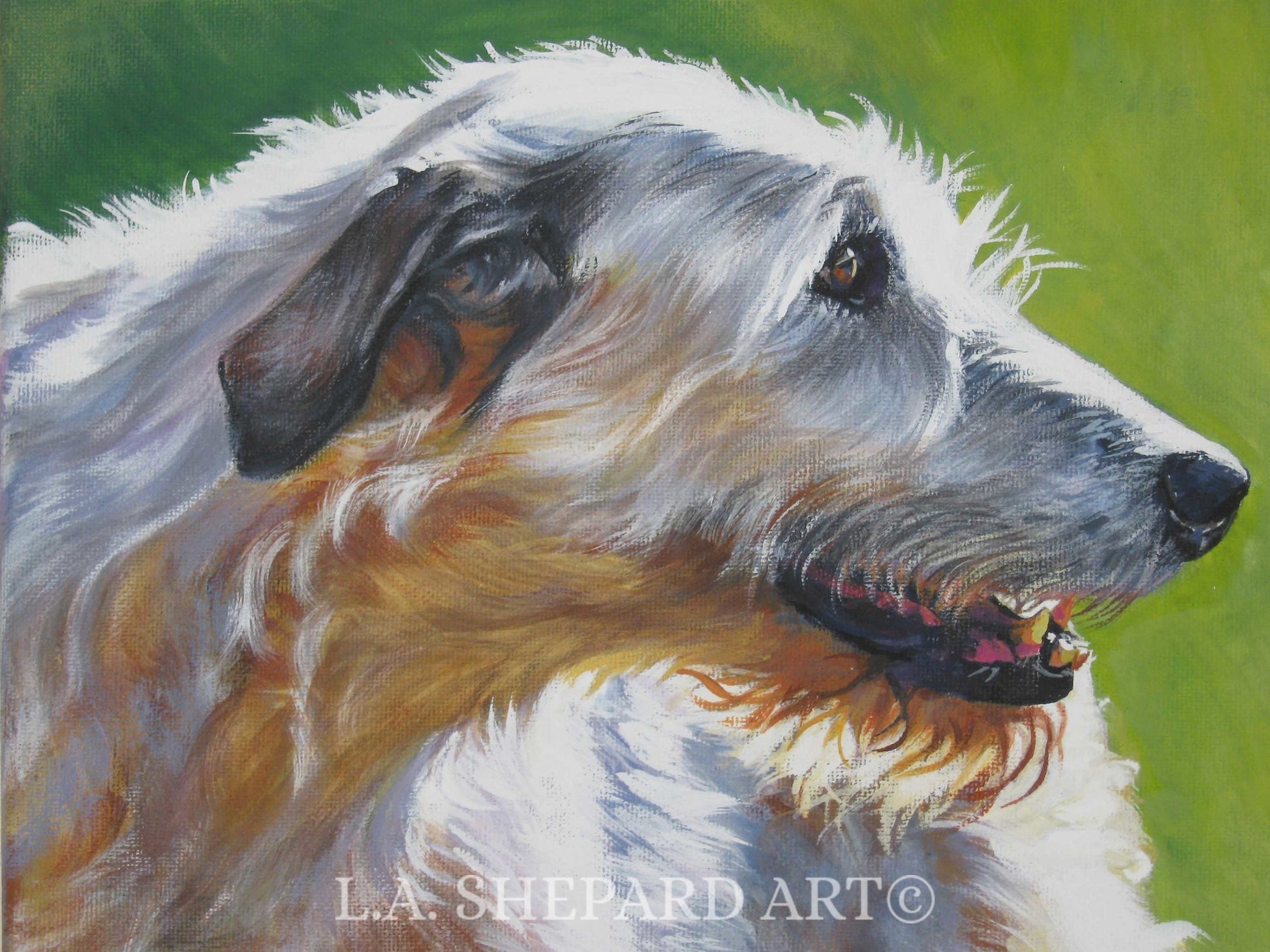 IRISH WOLFHOUND dog art portrait canvas PRINT of LAShepard painting 11x14