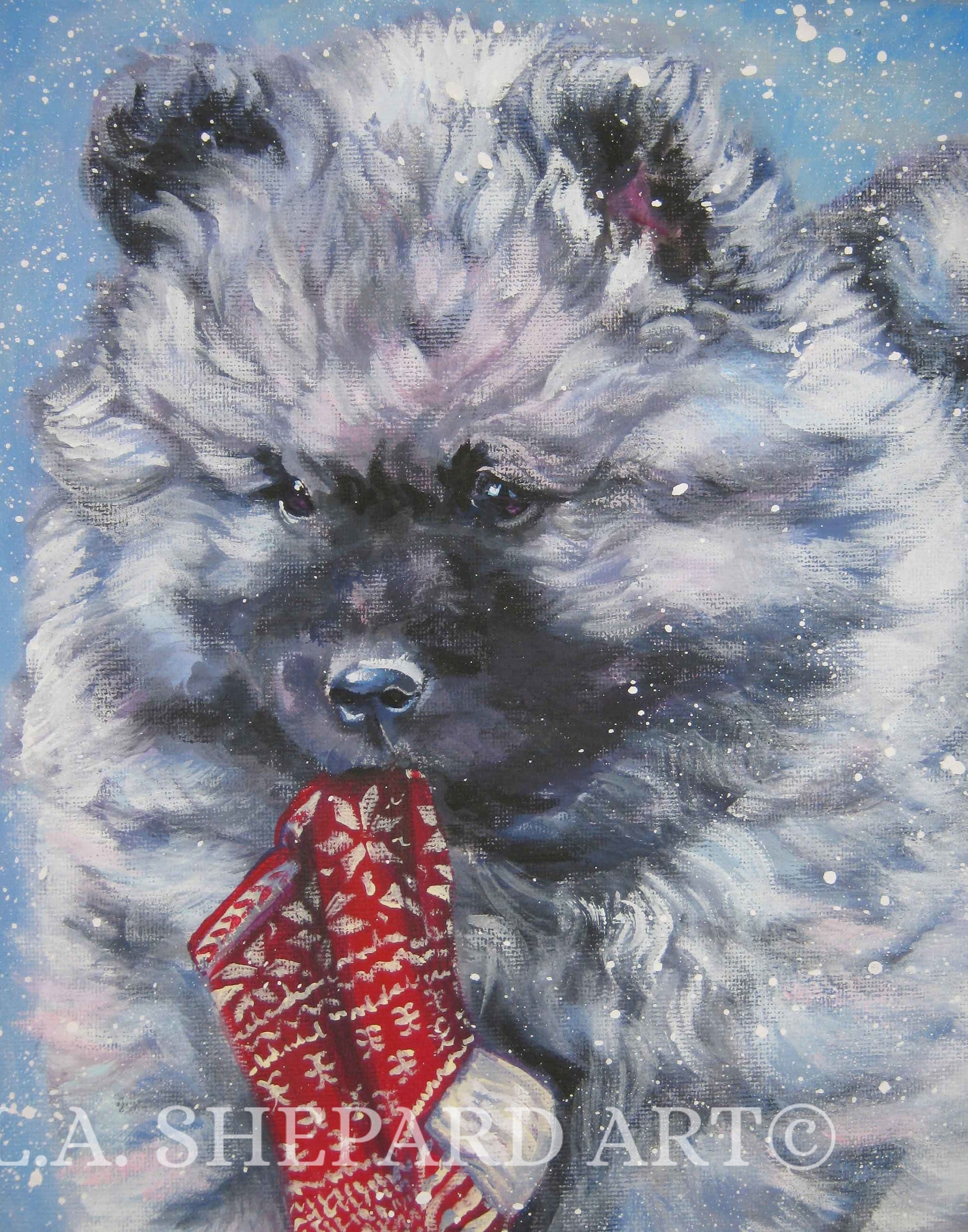 KEESHOND dog art portrait canvas PRINT of LAShepard painting 12x16" xmas puppy art