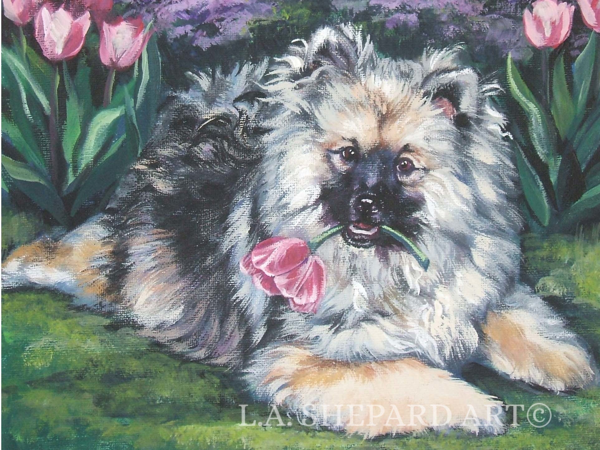 Keeshond print by L.A.SHEPARD 12x16 inch
